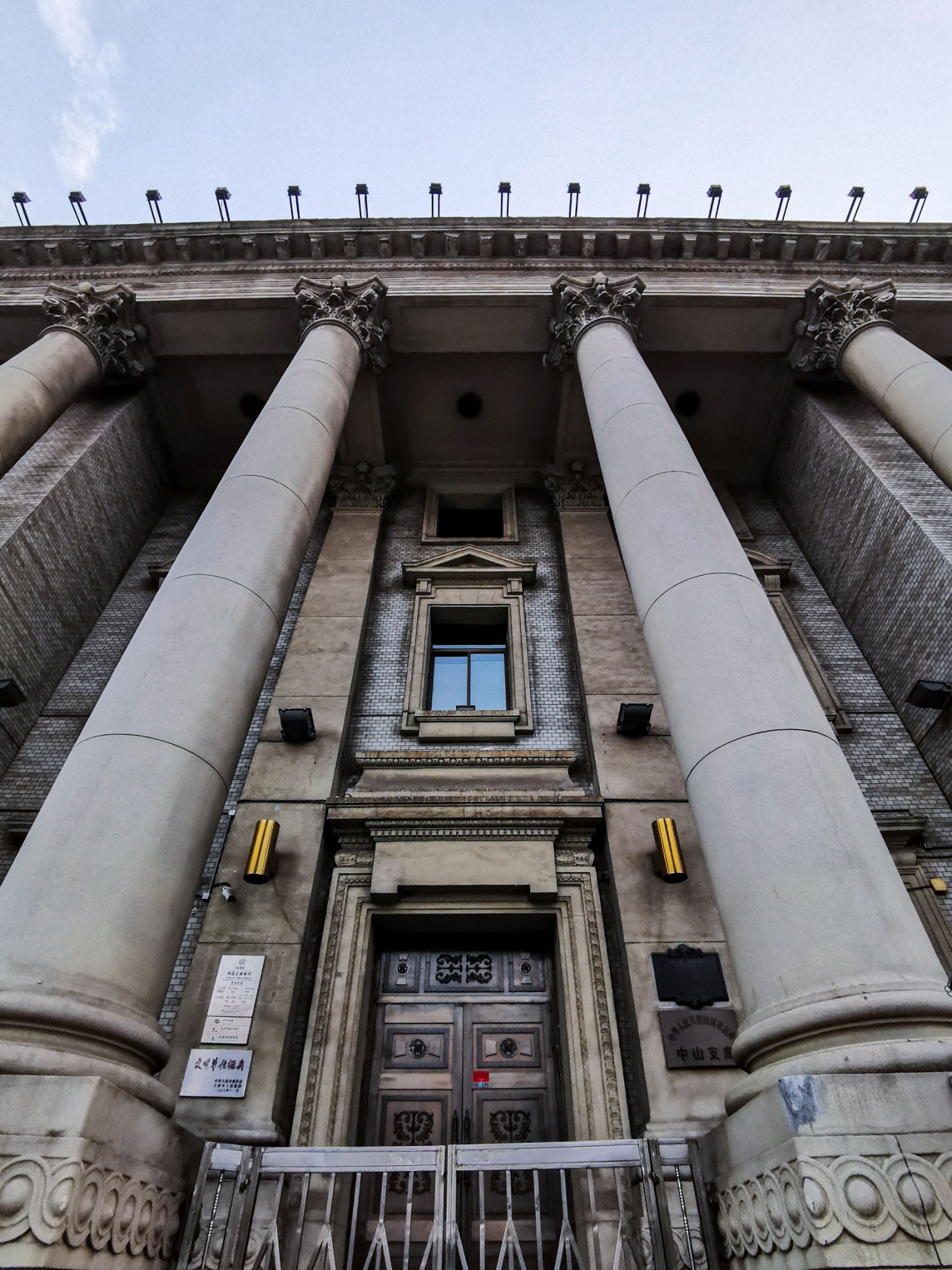 文艺复兴风格 科林斯 柱式建筑,位于民康街和 中山 路之间。设计者是 朝鲜 银行的建筑顾问、银行建筑专家中村与资平,在京城(今 首尔 )开设建筑设计事务所,1917年在 大连 开设分支机构,1922年回到 日本 ,设计事务所由下属 宗像 主一接手,改名中村 宗像 建筑事务所。 朝鲜 银行在 日本 占领地区同样行使中央银行的职能。二战后, 朝鲜 银行解散,建筑最初由 中国 人民银行 大连 市分行使用,后迁出,在其后身 新建 办公大楼。目前由 中国 工商银行 中山 广场支行使用。