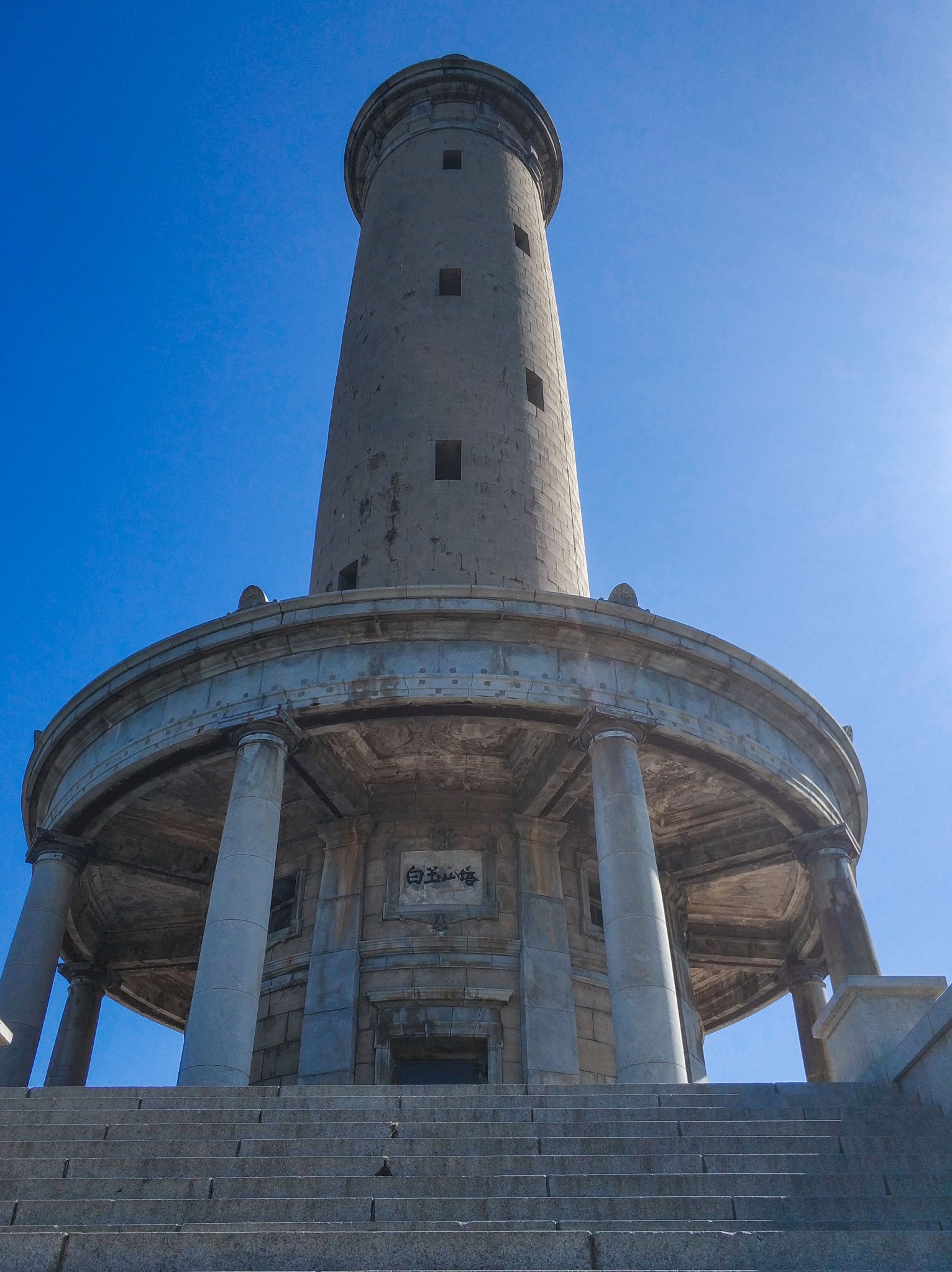 白玉 山塔是 白玉 山景区的主要景观。 白玉 山塔,原名“表忠塔”。 是由日军联合舰队司令 东乡 平八郎和第三军司令乃木希典选址 白玉 山发起修建,用于存放在战争中阵亡的日军官兵的骨灰。 白玉 山塔始建于1907年6月,1909年11月竣工。塔高66.8米,共有273级台阶、18个窗口,塔顶北侧的铜刻铭文是东乡 平八郎和乃木希典联合撰写,铭文记载了 旅顺 要塞争夺战的简要过程。塔内铁质螺旋楼梯在 美国定做,塔基花岗岩取自日军沉船闭塞时用的石料,基柱和塔身石料大都从 日本 国内运来。塔顶北侧的铭文及“表忠塔”三个字,1945年被苏军铲除,后改为 白玉 塔。 1952年,“纳骨祠”拆除,1985年, 白玉塔作为“日俄战争遗址和帝国主义侵华物证”被列为市级文物保护单位,并依山更名“ 白玉 山塔”。