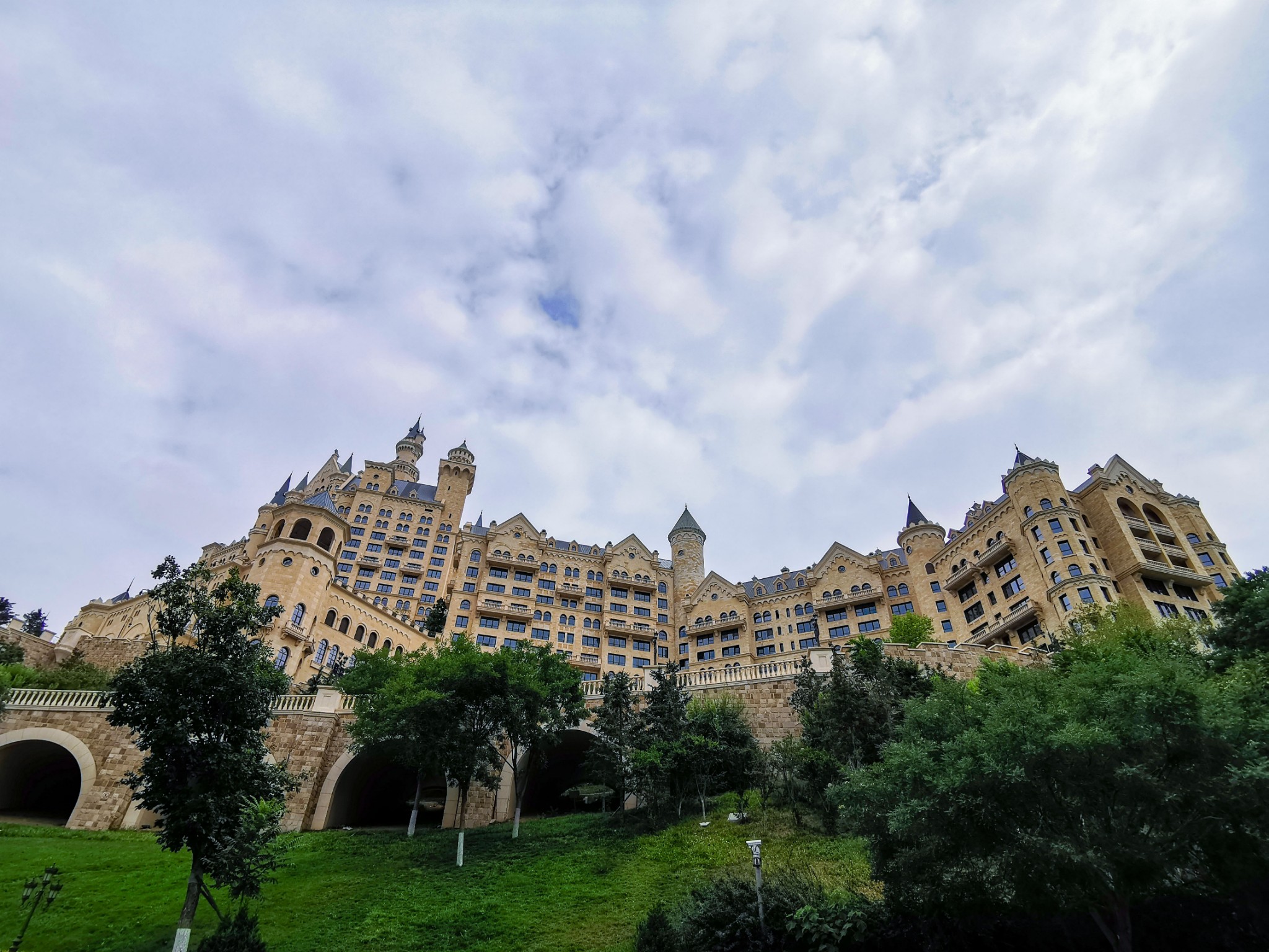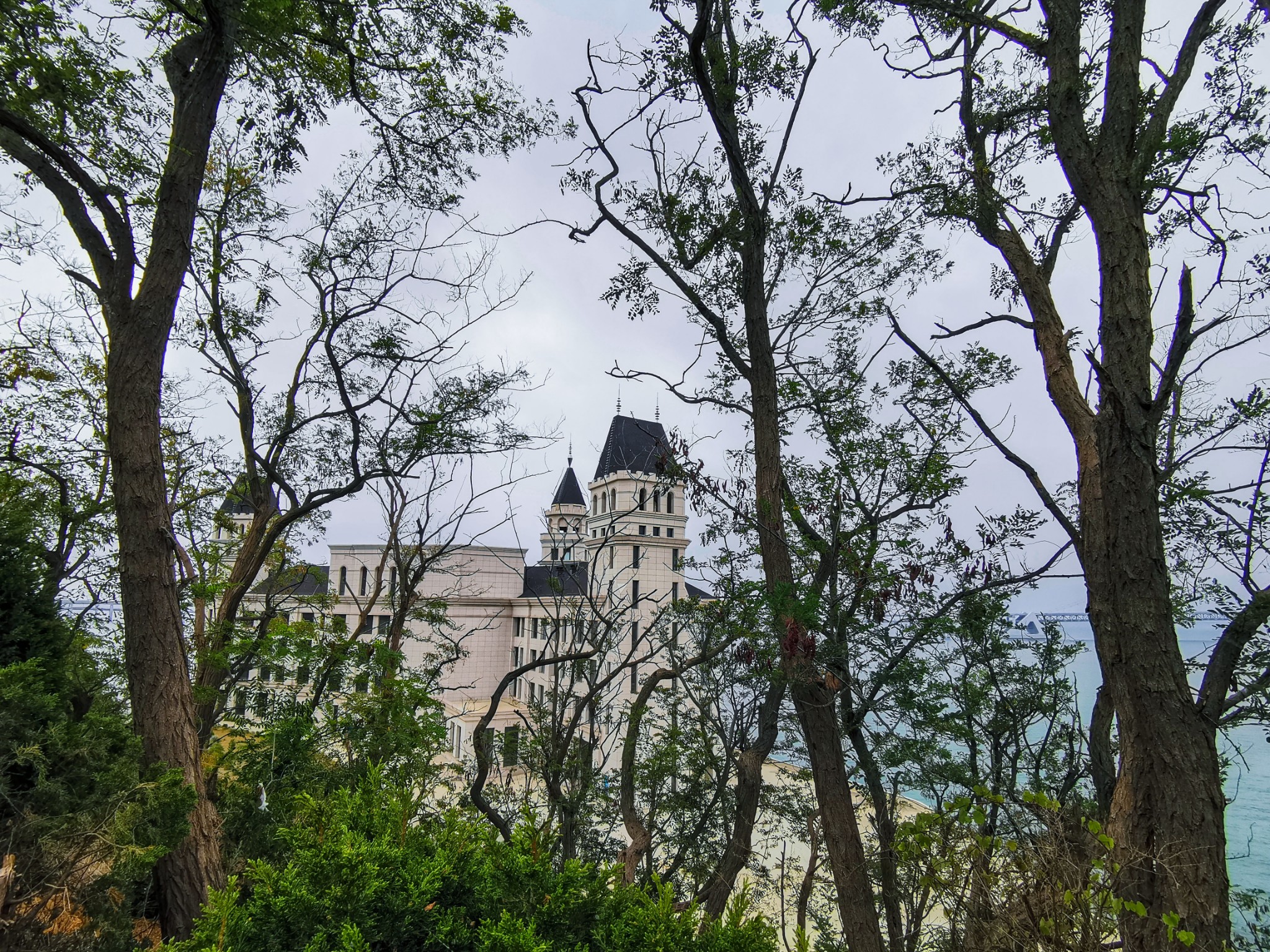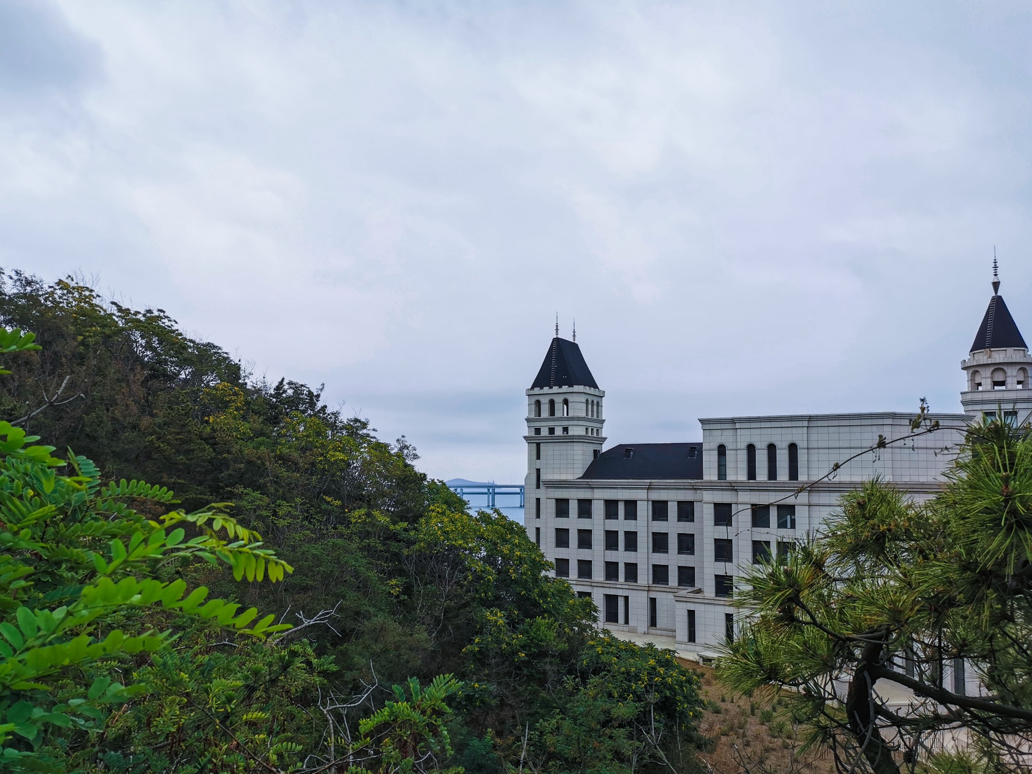 一下车就看见对面山上的城堡, 大连 星 海城 堡建筑自2002年建成以来,已成为 大连 市的地标性建筑物。但是仅有一小部分面积被用作贝壳展览馆使用,其余面积一直处于空置状态,使城堡价值没有得到充分利用。市政府及星海湾开发建设管理中心为全面有效利用好这一城市资源,盘活资产,于2007年开始启动星海湾城堡改造计划,将星海湾城堡改建成五星级酒店。现在贝壳博物馆已 新建 搬迁至离星海广场更近的位置。