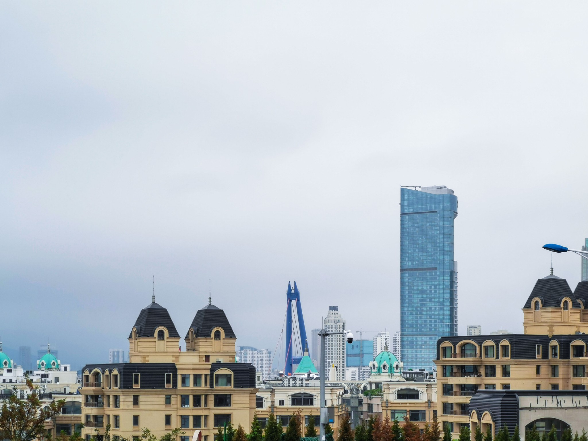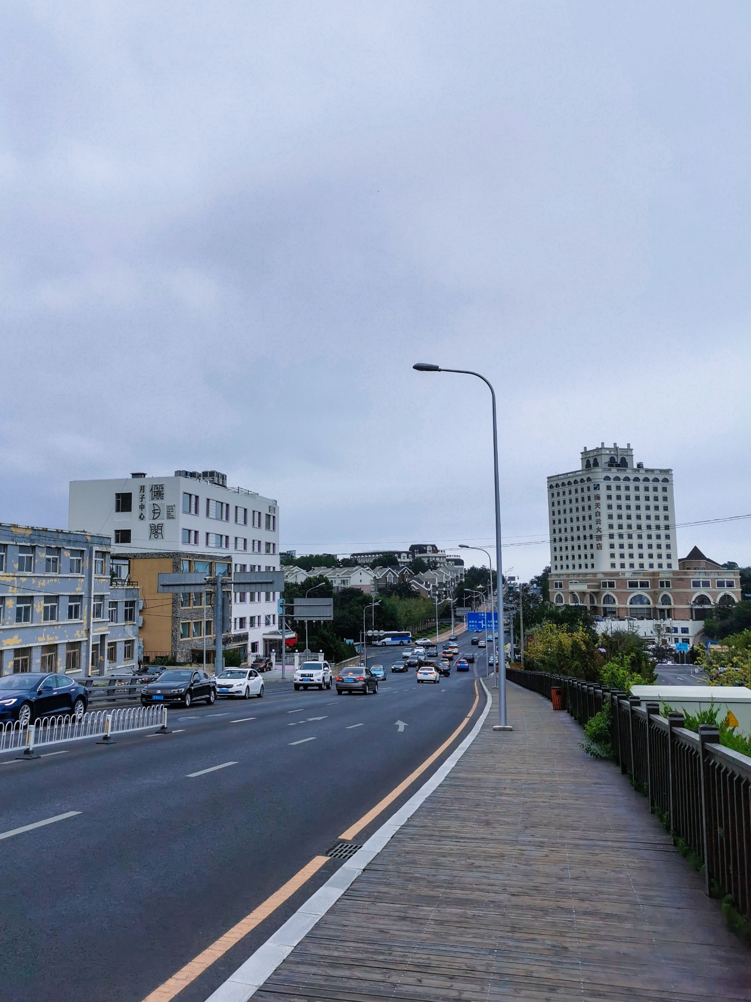 酒店前面有块宽阔的观景平台,站在此处可以看见星海湾大桥的全貌。