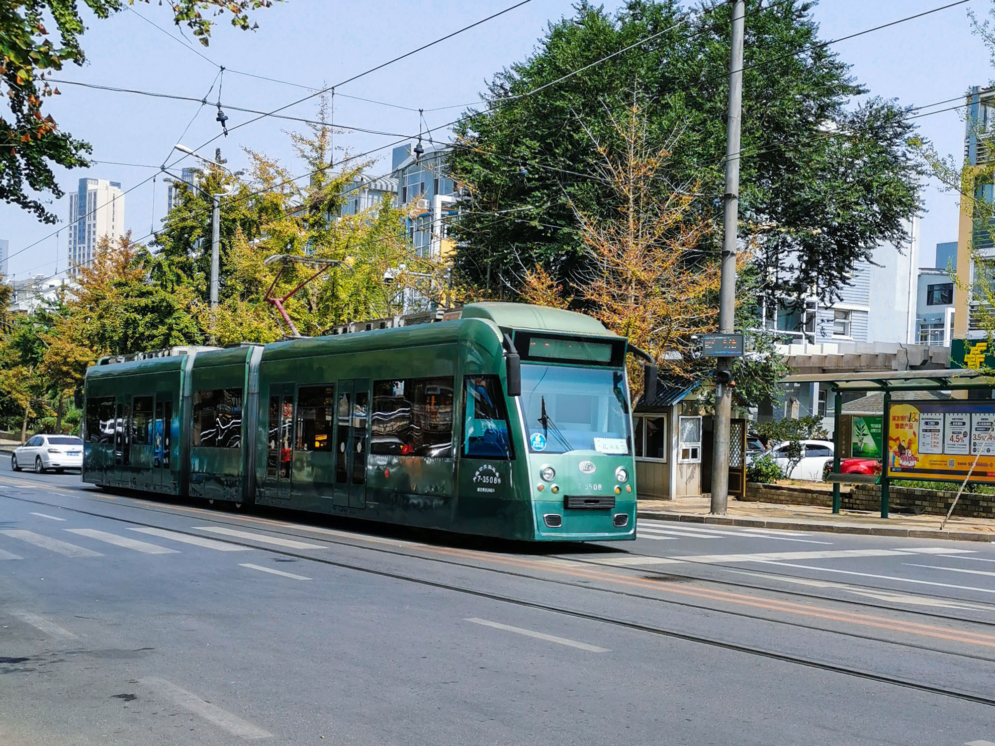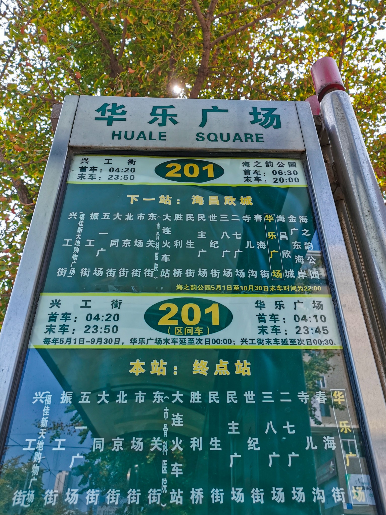 乘车前往华乐广场,华乐广场是201有轨电车区间车的终始点,约15分钟才有一趟车,且有两种车型,想坐老式的有轨电车就得多等等了。