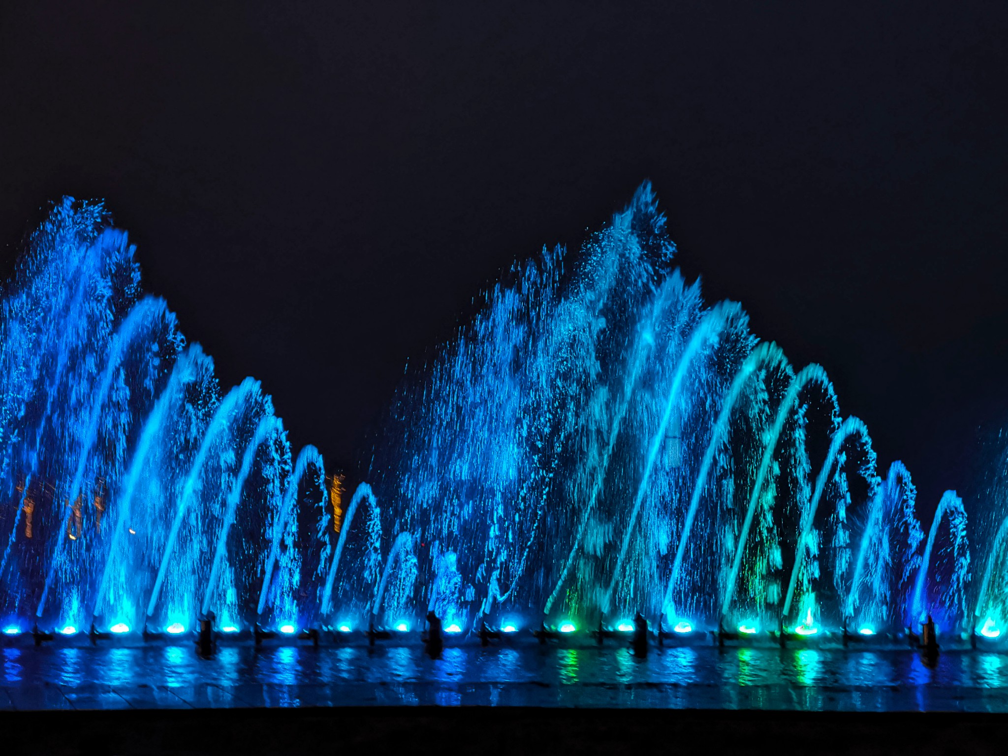 不管是本地人还是来 大连 旅游的,不少人都喜欢去看音乐喷泉表演,作为 大连 的城市名片,喷泉与音乐的完美融合,浪漫梦幻,让人流连忘返。 大连 有三大音乐喷泉表演,分别是 东港 音乐喷泉,人民广场音乐喷泉,星海广场音乐喷泉。只看过 东港 音乐喷泉和人民广场喷泉, 东港 的喷泉大,气势恢宏,看的人也多,人民广场的喷泉小些,但可以近距离接触。