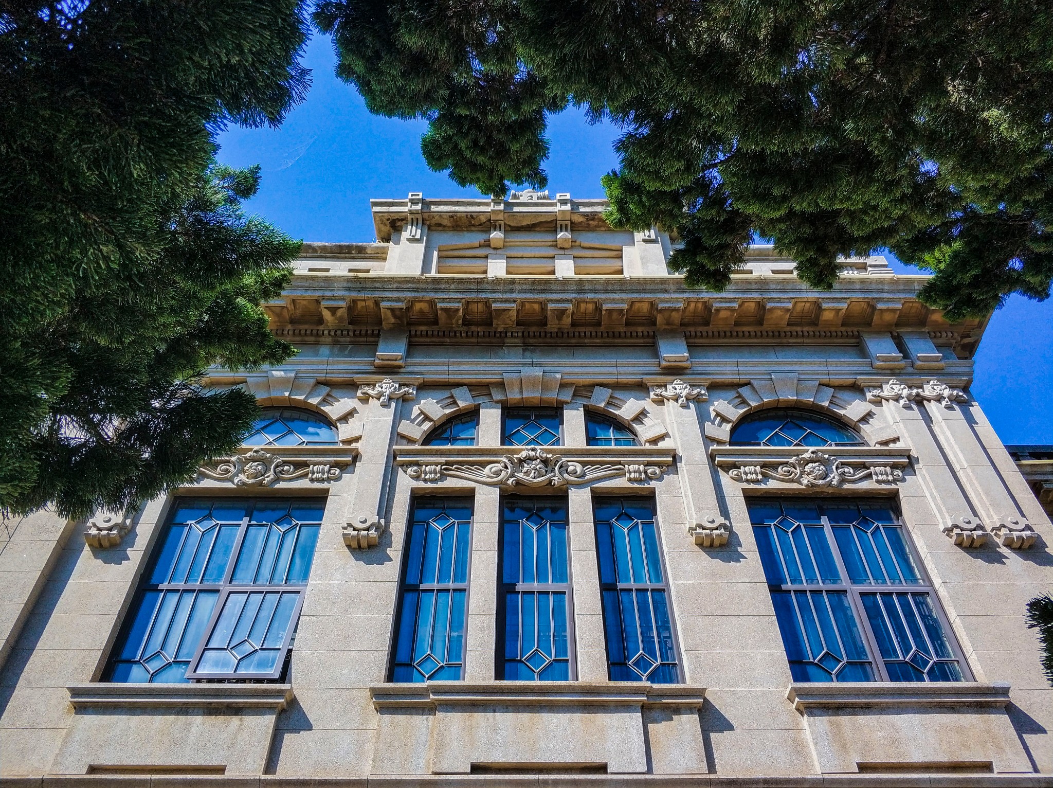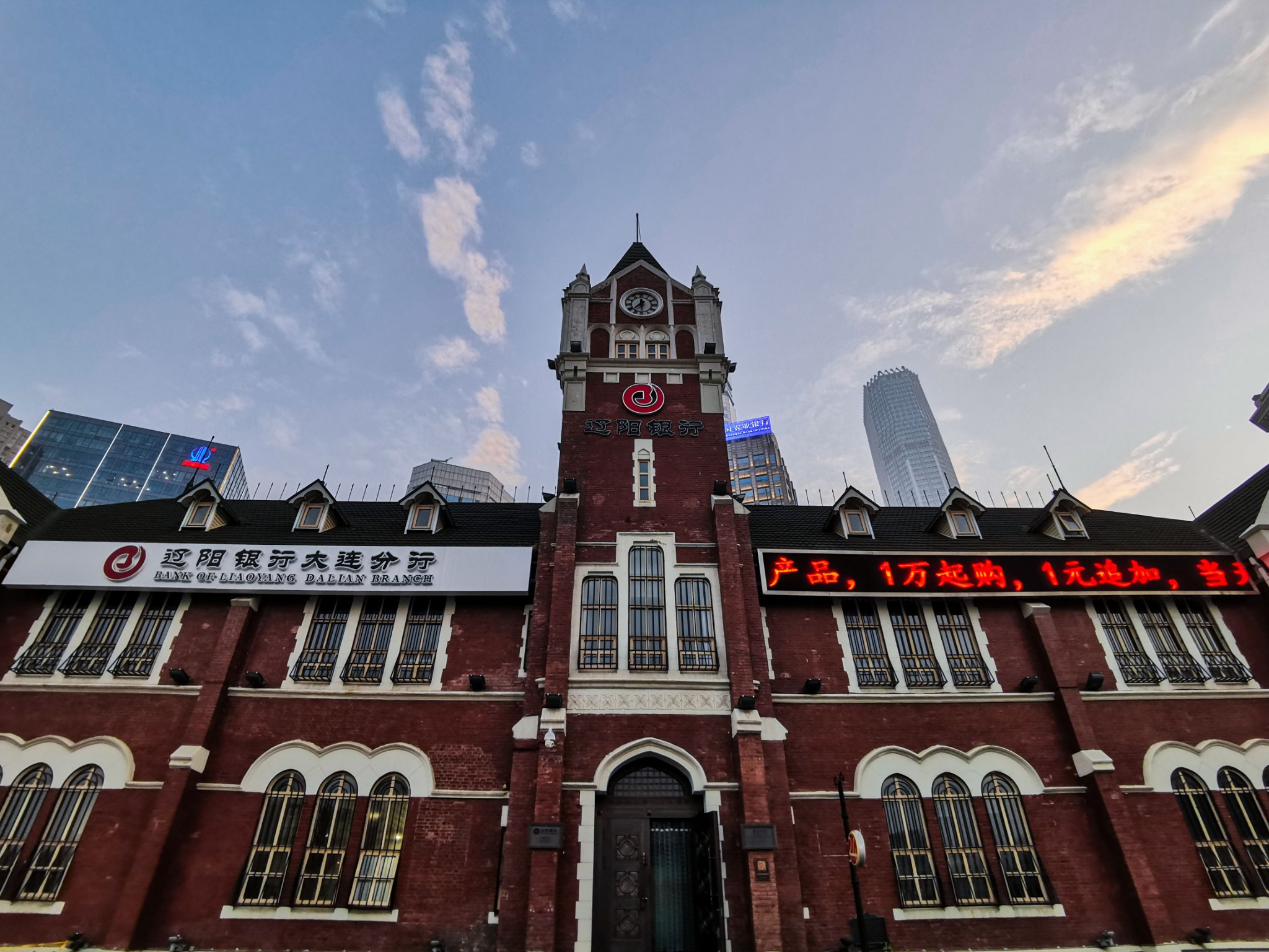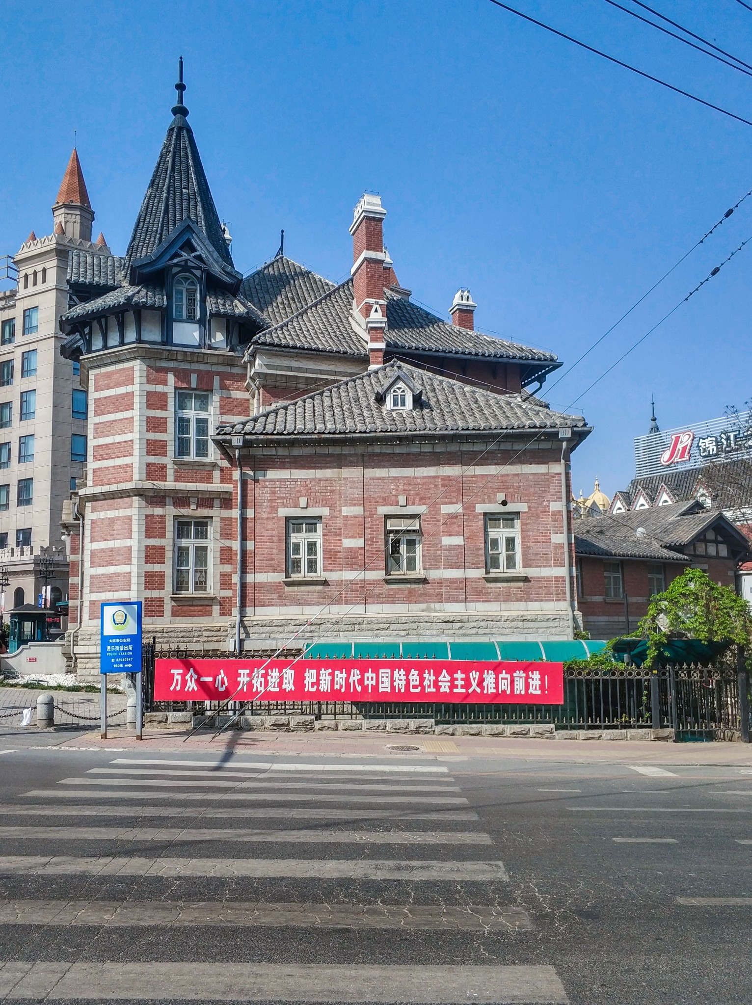 哥特式建筑,位于 中山 路和玉光街之间。这座建筑是 日本 统治时期广场周边最早的建筑,钟塔系参照欧洲 市政厅风格而设。所用的砖由满洲炼瓦会社生产,石材使用 山东 省出产的红色花岗岩。设计者是关东 都督府土木课的前田松韵为首的团队。他是最早来到 中国 东北 的 日本 建筑师,日俄战争时曾指导军用仓库建设。不久后成为 东京 高等工业学校教授。尽管在任时间短暂,但奠定了 大连 民用建筑规模和耐火构造的建筑规则,对 大连 城市建设有一定影响。 大连 民政署是 关东 都督府民政部下属的管辖 大连 的行政机构,1922年改为 大连 警察署。二战后建筑成为 中国 海军后勤部,后由 辽宁 省外贸厅使用。现为 辽阳 银行 大连 分行。