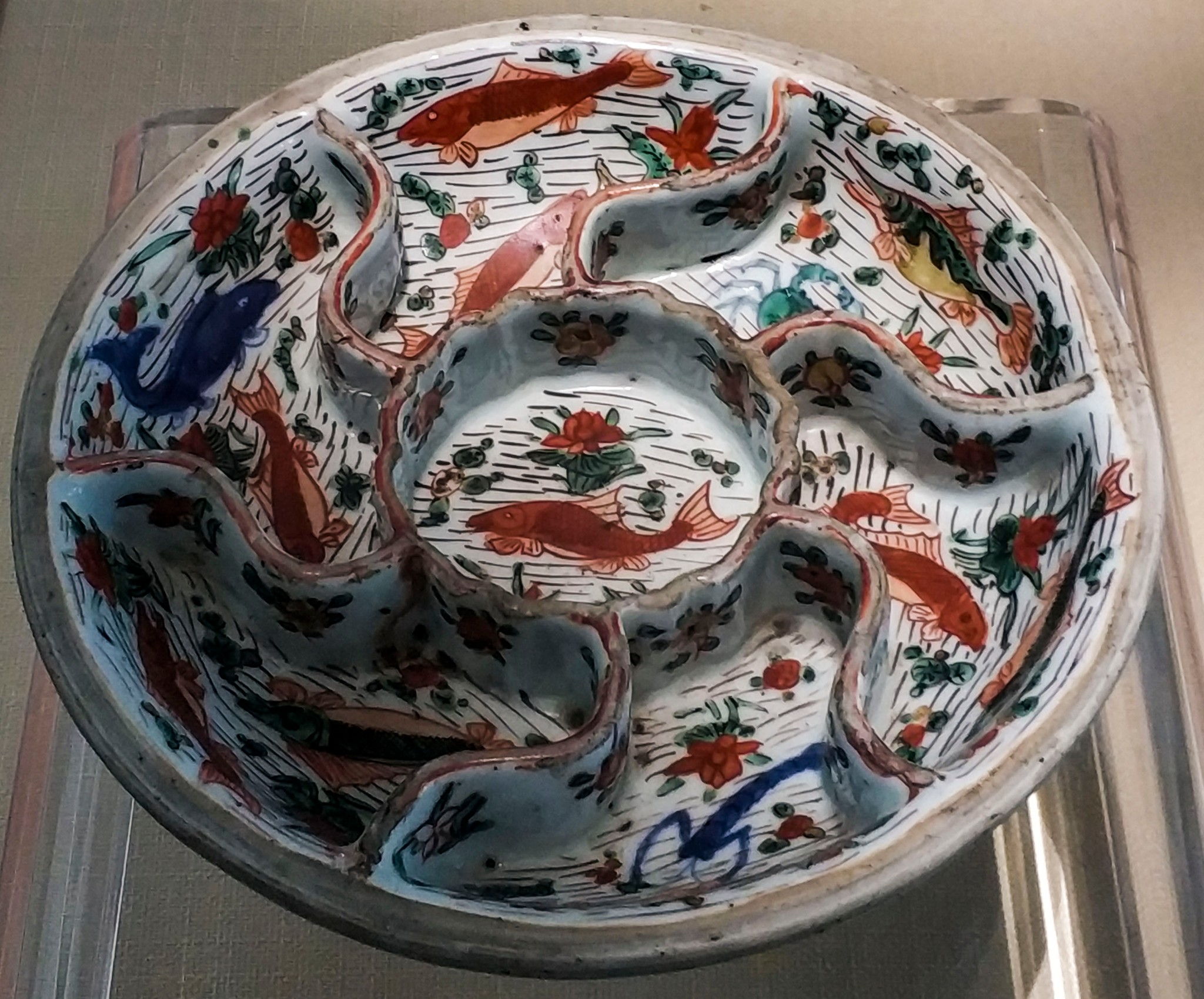 青花缠枝莲菱花口盘 明宣德