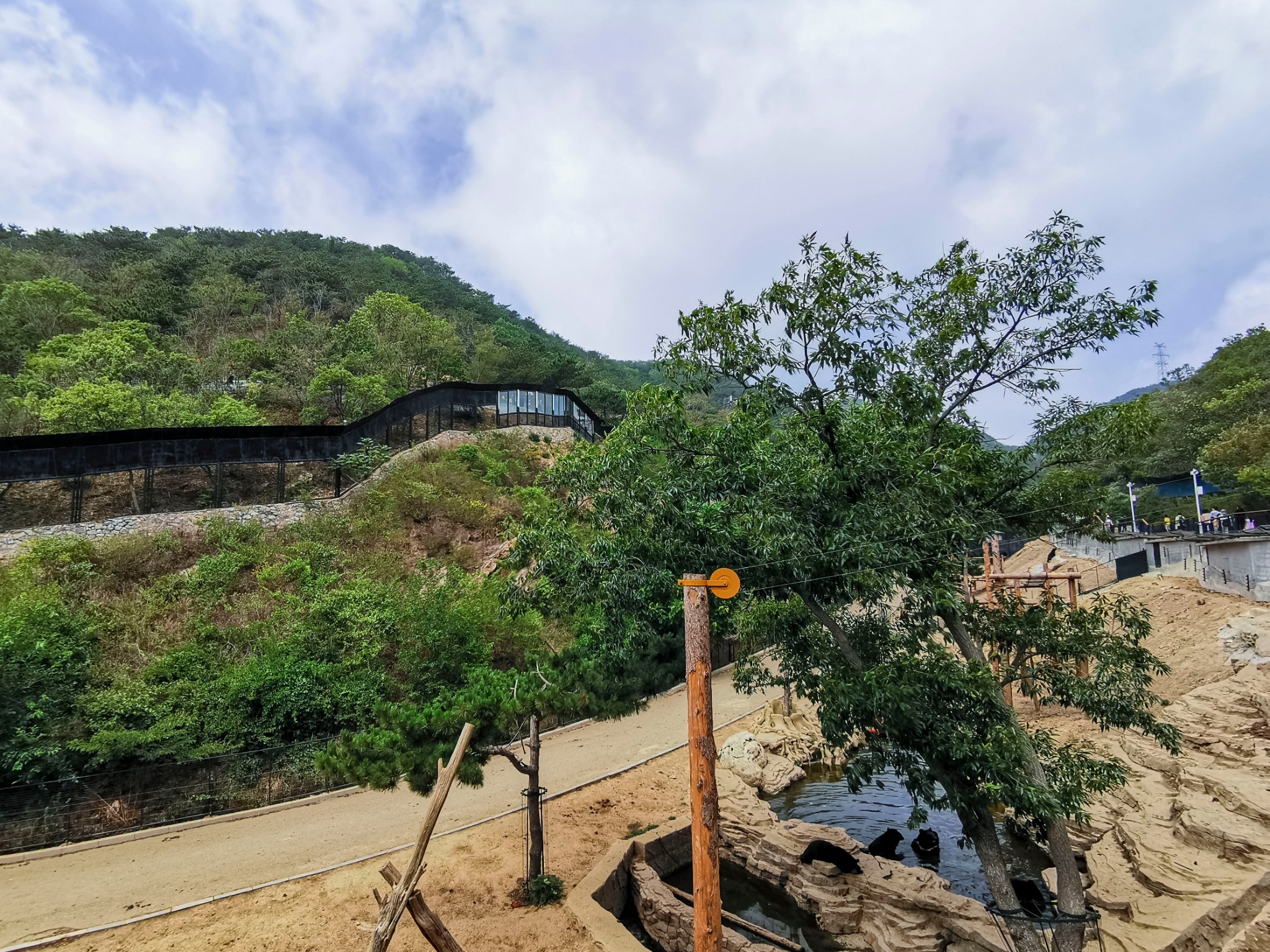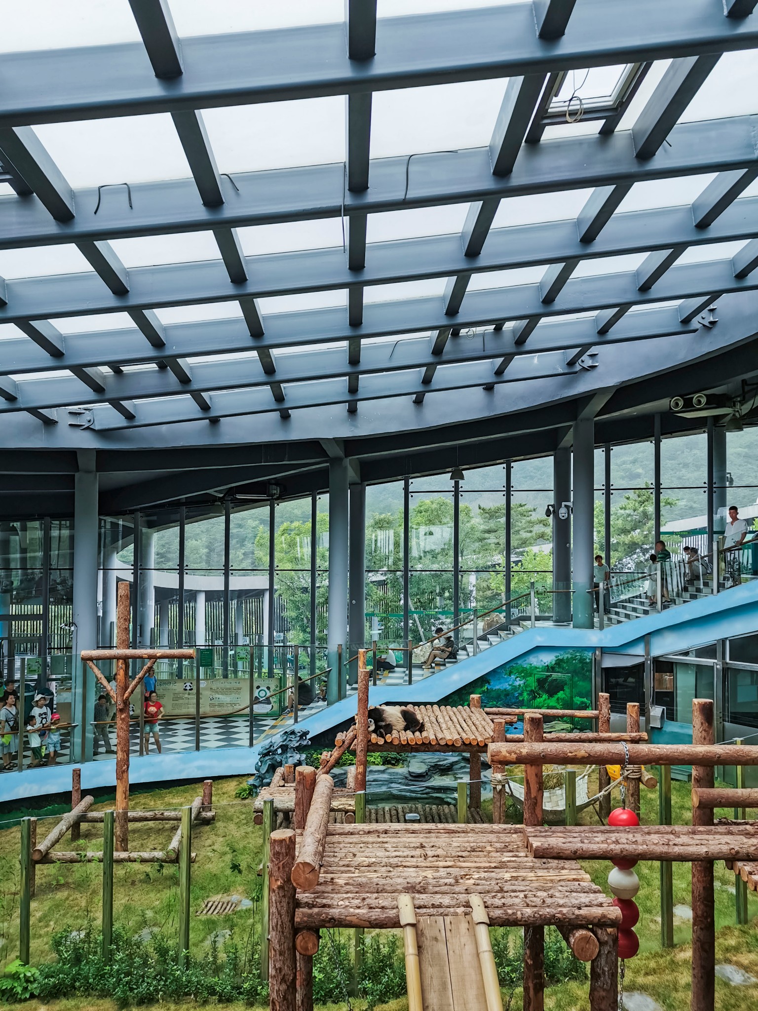 接着往上走,就能看见电扶梯了,乘坐电梯就能到达圈养区。电梯分几段,非常便利,免去爬山辛苦。
