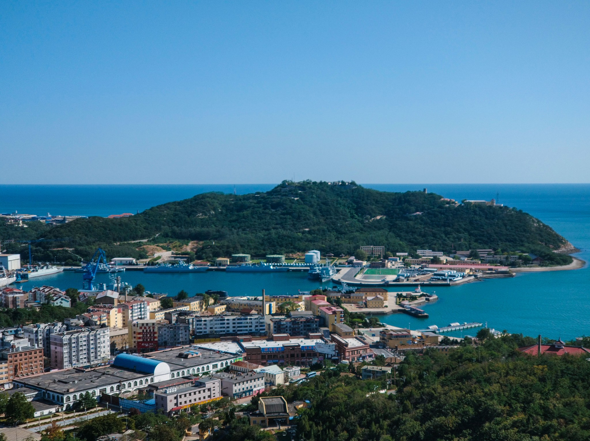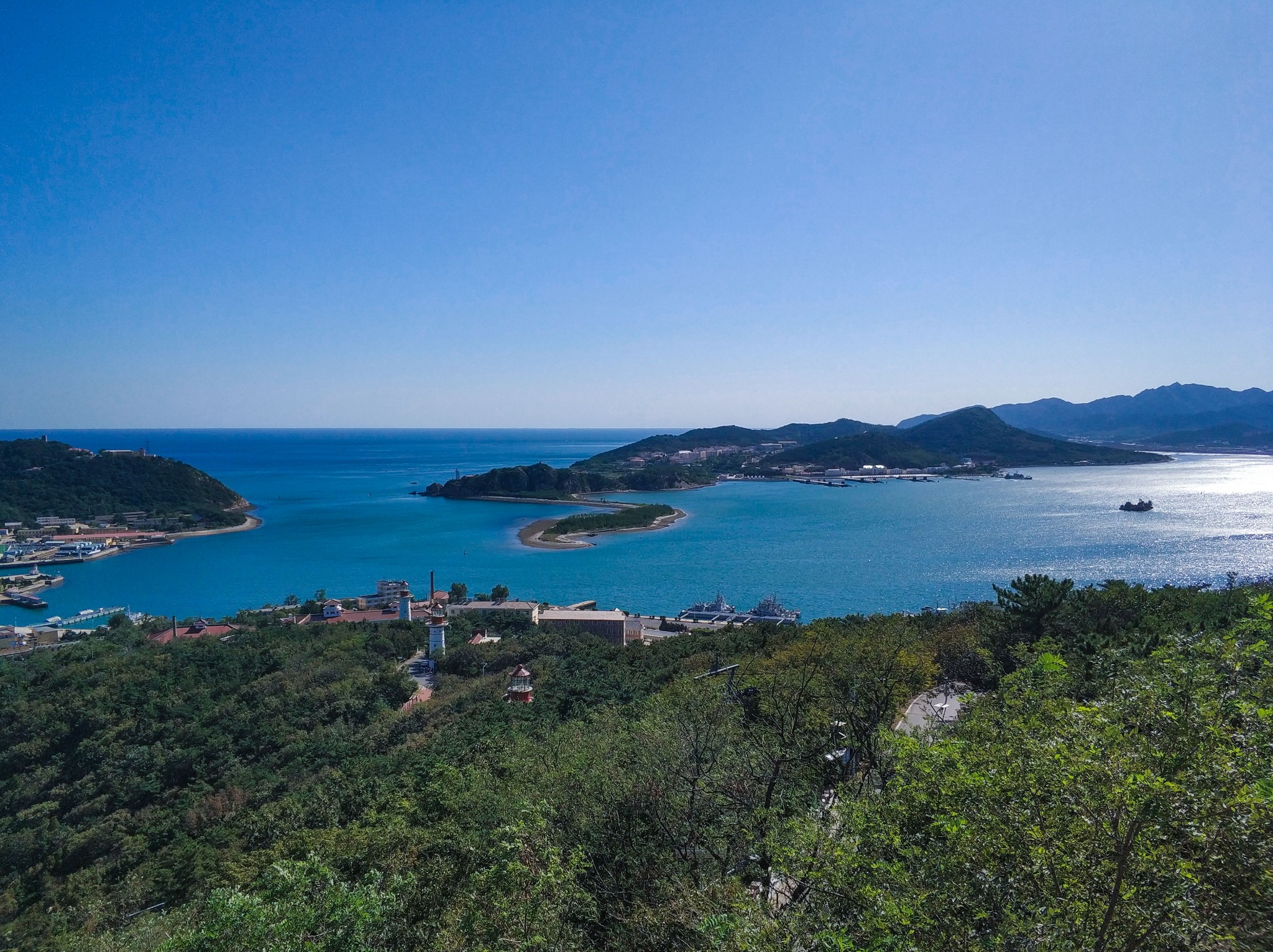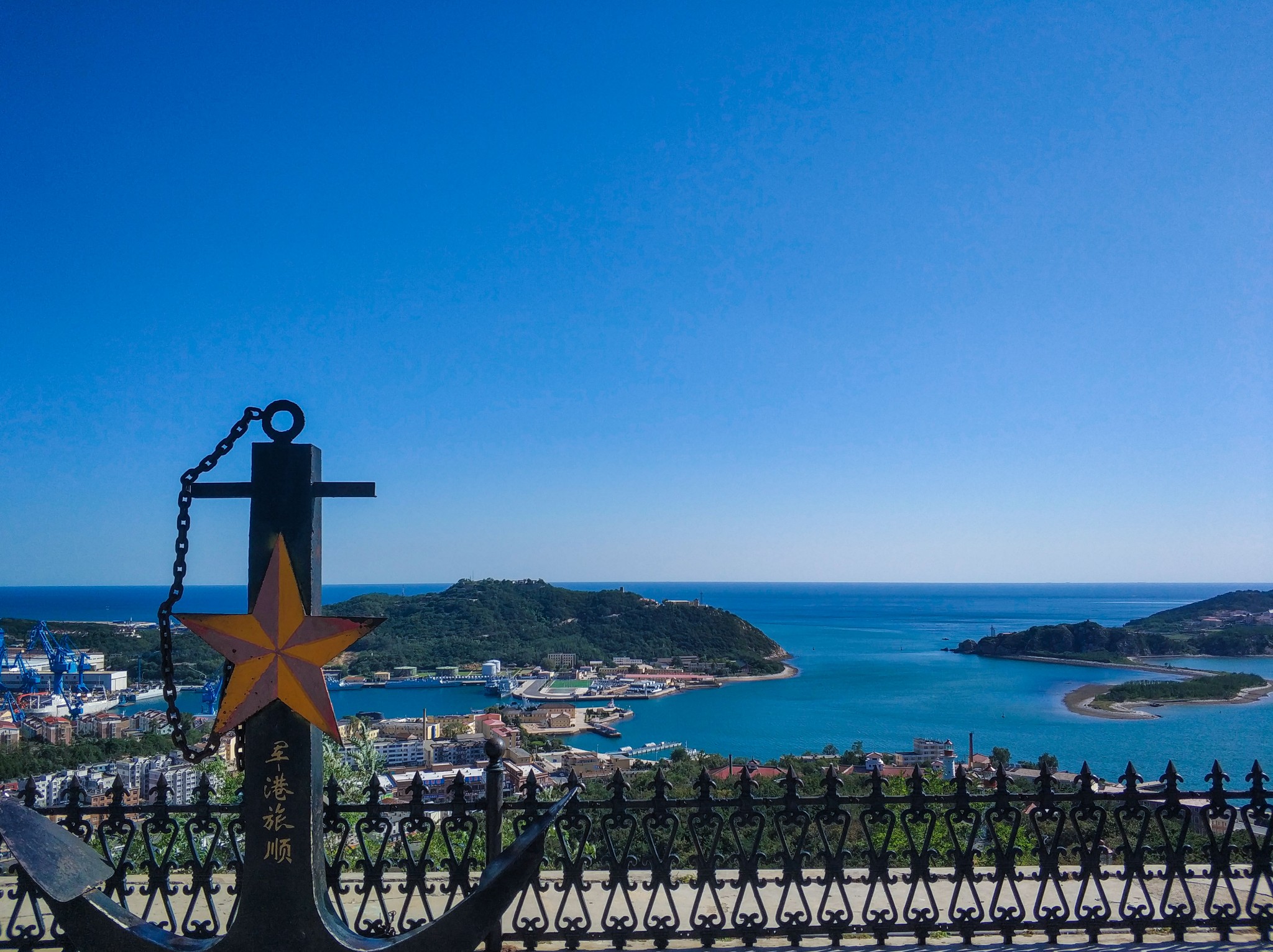白玉 山海拔130米,登顶鸟瞰, 旅顺 市区全貌、秀美壮观的军港以及威武的海军舰队尽收眼底。