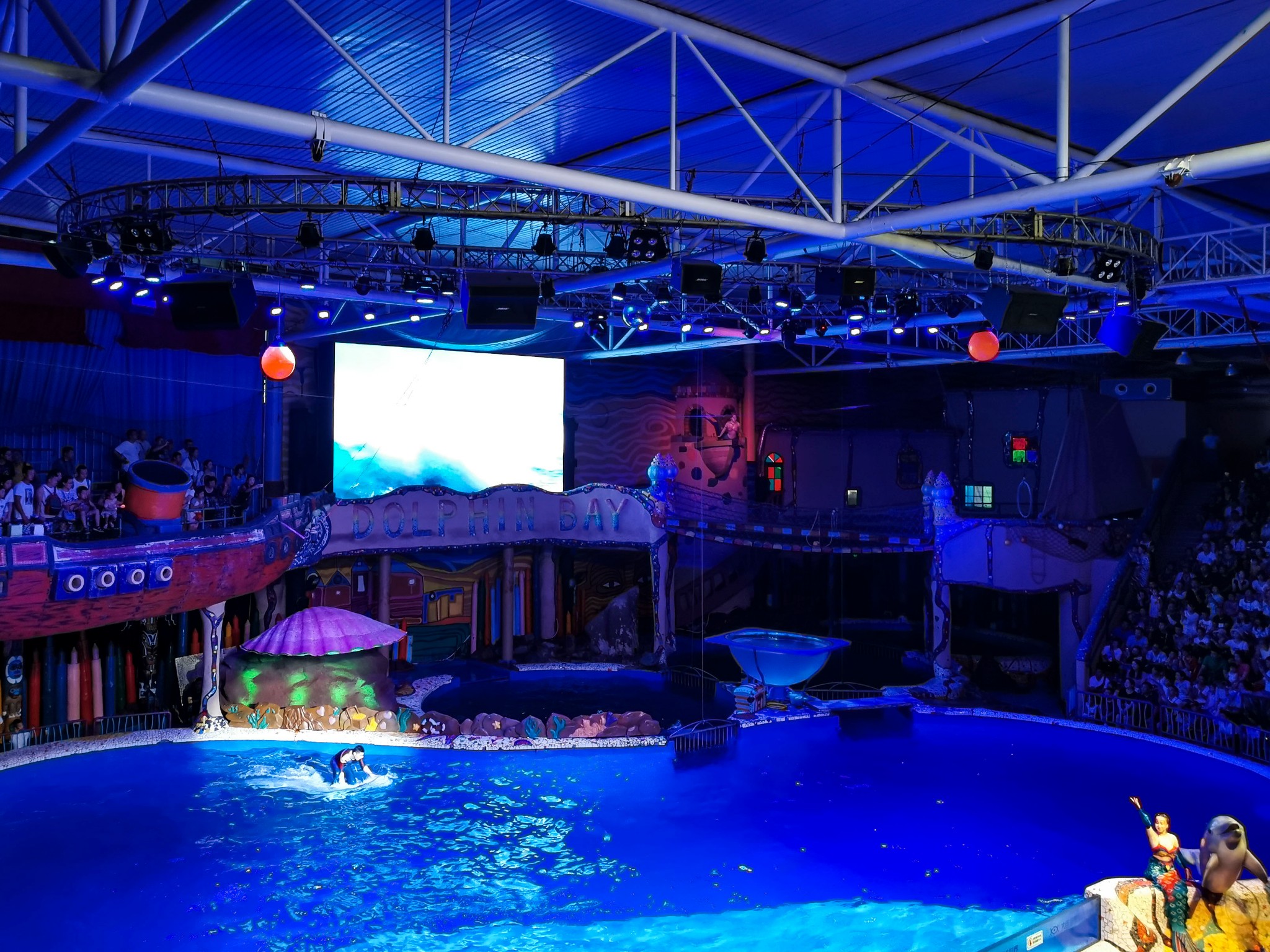 《 海豚湾 之恋》是一场糅合多元艺术形式的水秀表演,制作班底由原迪斯尼全球娱乐创意总监罗尼•罗德雷格斯率领, 美国 著名娱乐表演产品设计公司Brown Entertainment创意大师Bill•Brown担纲导演、《花 木兰 》音乐人亲自配乐联袂打造,带给你震撼人心的视听盛宴!奇幻的360度多维水秀场,海豚、白鲸与美人鱼、王子、月光天使以及海盗联袂演绎真人版“人鱼童话”。多种艺术形式、多重情感体验,强大的表演阵容,带给你梦幻、动人的海洋大戏!