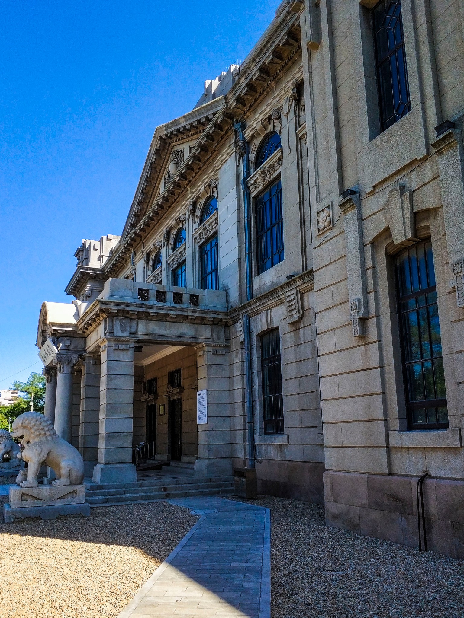 位于民生街和 上海 路之间,面向正南,正对 延安 路。妻木赖黄进行基础设计,实质性的设计由其徒弟太田毅进行。1945年至1955年为苏联远东银行。现为 中国 银行 辽宁 省分行。值得一提的是内部禁止拍照。