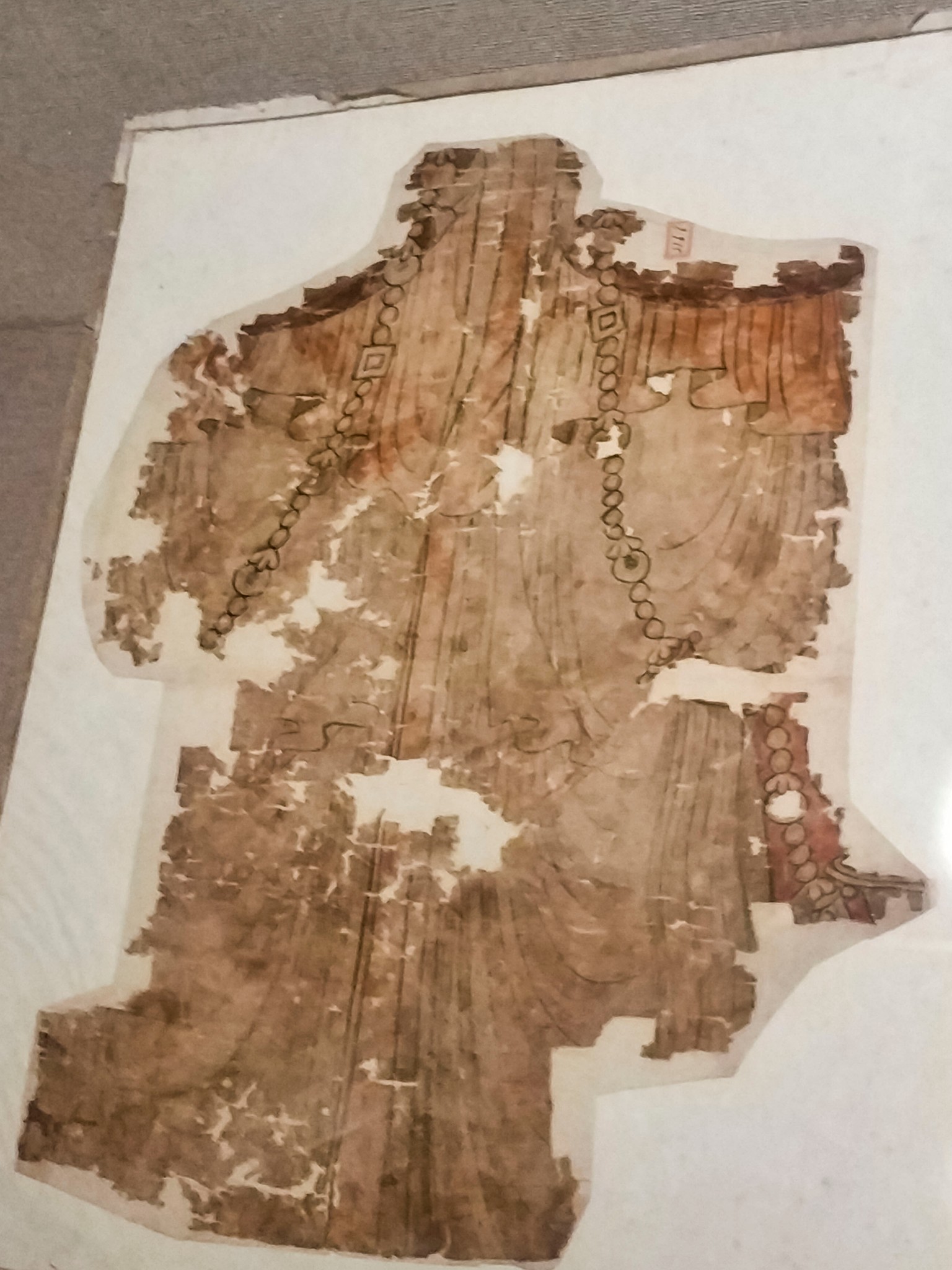 高37宽35.5厚4.5厘米 出自 新疆 哈拉和卓墓地 1929年入藏