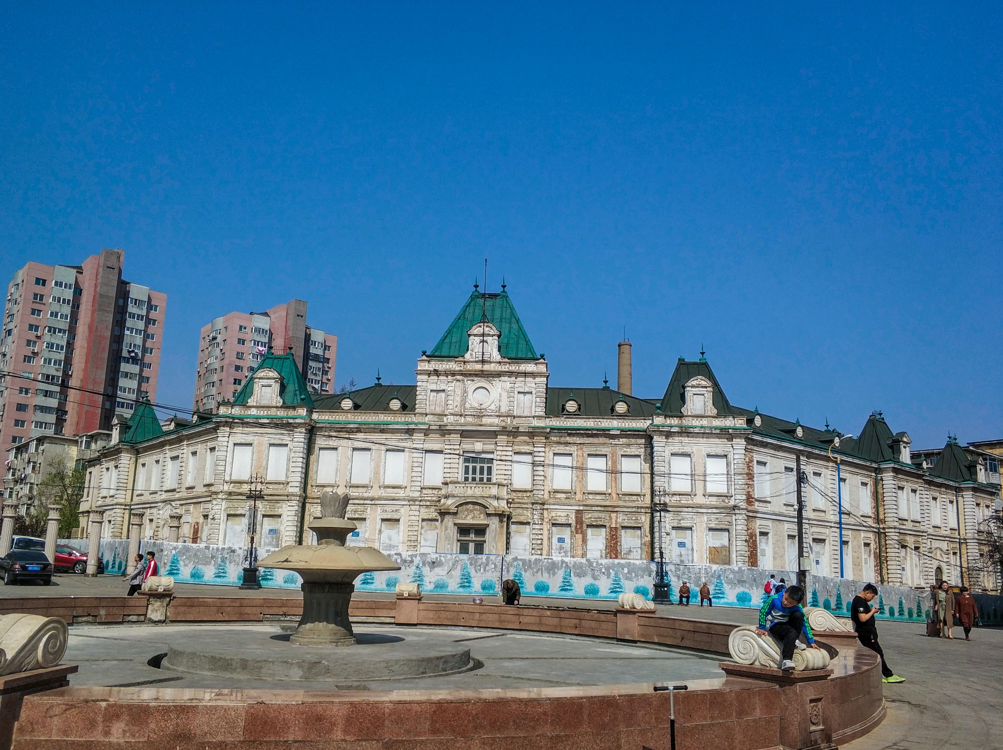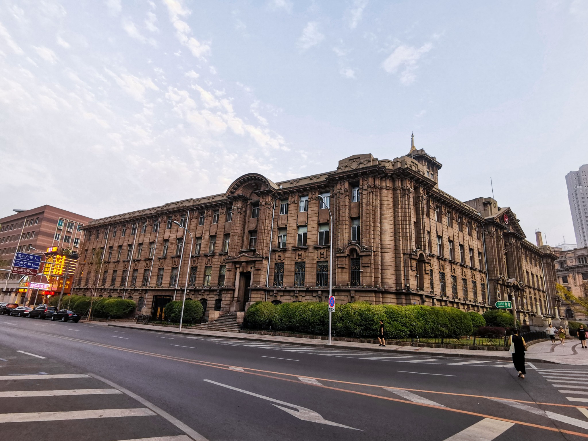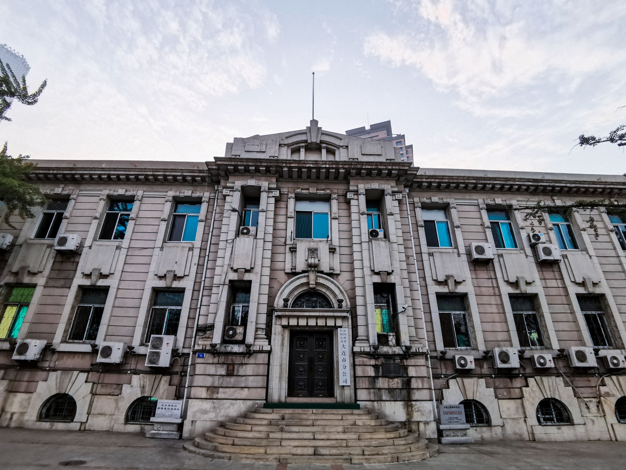 位于 上海 路和民康街之间。与广场正对面的 大连 市役所同为松室重光设计。苏军接收后临时作为苏军大连 警备司令部。今为 大连 市邮政局。
