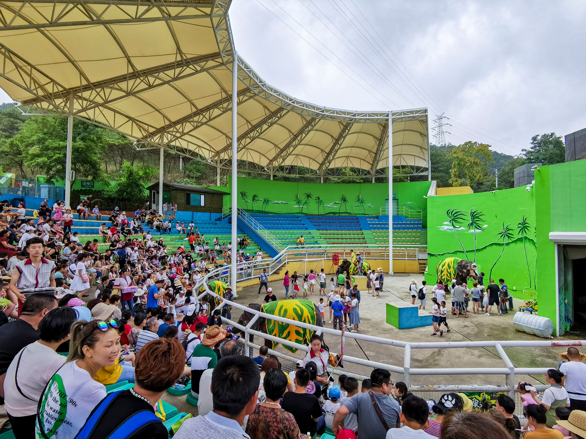 圈养区内设有欢乐剧场和大象行为展示馆,每日进行精彩循环演出。
