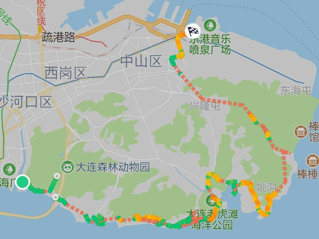 【滨海路中段】燕窝岭景区,北大桥,鸟语林,虎雕公园。全长6.7公里。