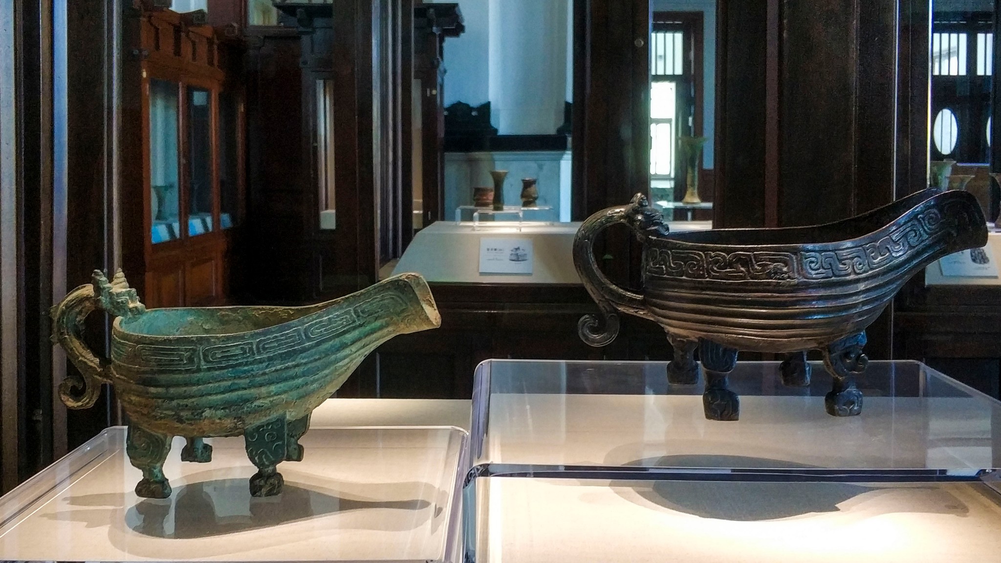 改陈后的《吉金传古—— 旅顺 博物馆藏传世青铜器精品展》既呈现青铜器发展的序列,又兼顾作为一种文物类别人们对其的认识和研究。展览从馆藏大量青铜器收藏中遴选精品,以时间为序,分为鼎盛在三代(夏商周青铜器)、 中国 北方青铜器、汉代余绪三部分。大部分展品为清末至民国时期著名收藏家、金石学家罗振玉的旧藏。罗氏1928—1940年寄居 旅顺 ,其身后大量收藏品一度散落民间,上世纪50、60年代, 旅顺 博物馆经多方努力搜集入藏,成为馆内重要的收藏品类。因此,展览既展出了大量青铜礼器、实用器,又展示了人们对青铜器的研究成果,将有铭文的器物逐一释读,希望给观众一个全面的认知。