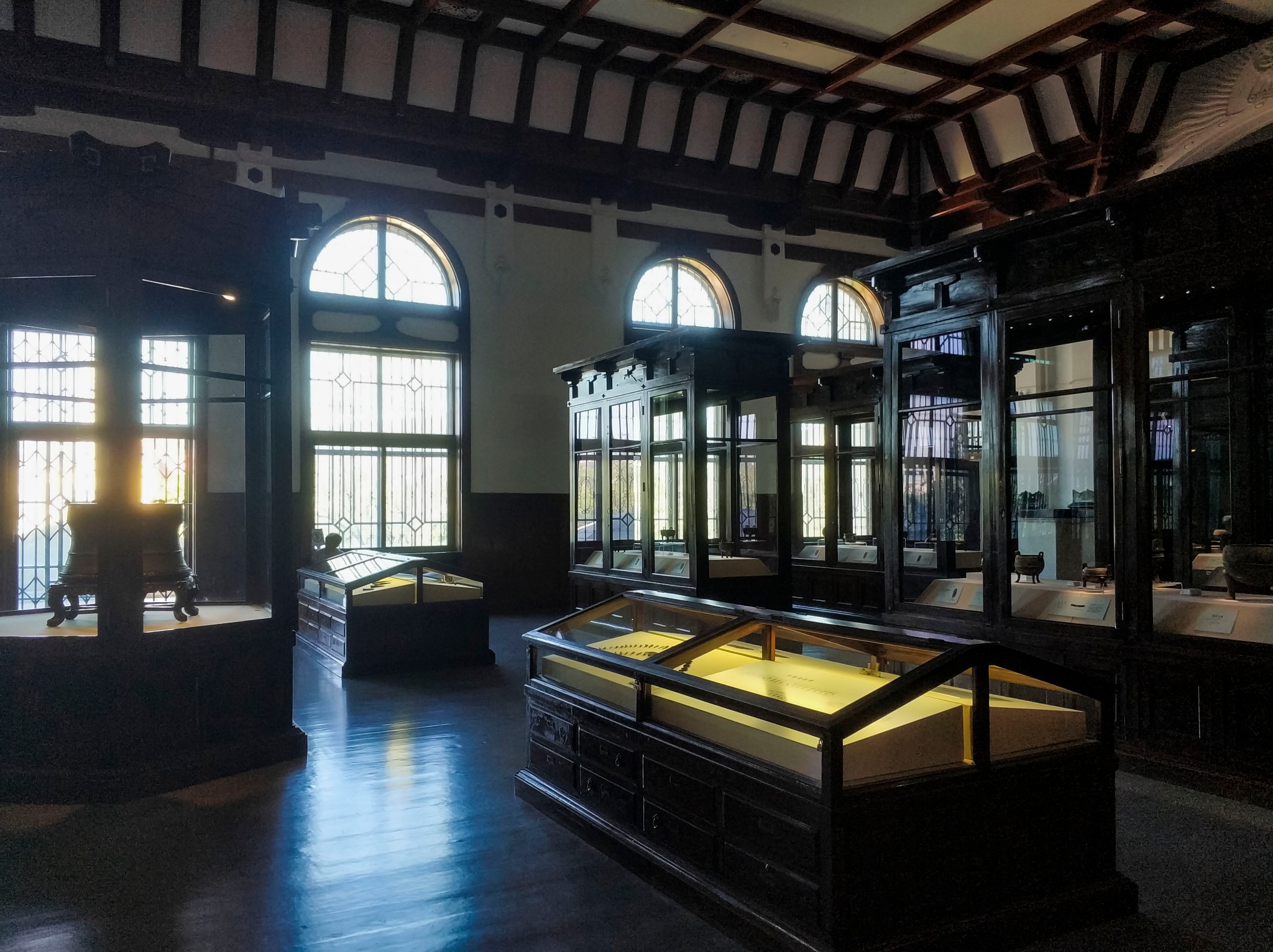 旅顺 博物馆不仅建筑本身历史悠久,而且其内部风格也很复古,内里的展柜是当年 日本 人留下的,特别有历史感。 旅顺 博物馆也是国内少有的采用自然光照明的,漫步其中,有种穿越时空之感。