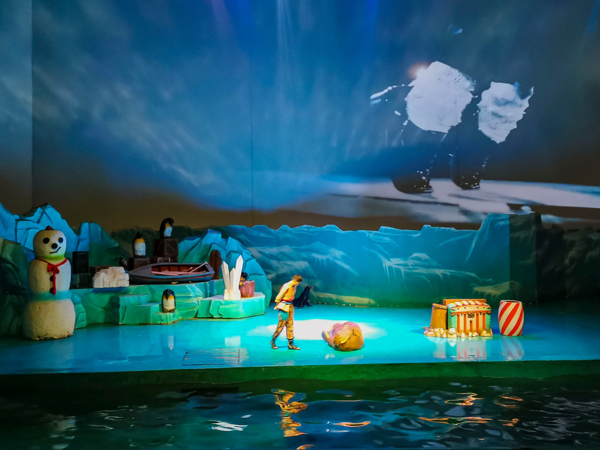 《白鲸传奇》是一场由白鲸小九领衔主演的白鲸水下表演秀。拥有长16.8米,宽6.6米,水深6米的水下表演场,驯养人员全程不佩戴气瓶等潜水用具,与白鲸水中共舞,呈现出人与海洋动物和谐共处的奇妙图景。白鲸水下表演,双人双鲸升级震撼演绎“白鲸骑士”、“水下华尔兹”、海底拼“心型”,人鲸大回环挑战,同步转体1080°,全水景精彩表演,兼具难度与创意的人鲸默契共舞,唯美圣亚极地世界。去的时候没有赶上表演时间,等下一场时间太长了,关是看着白鲸游来游去,就很有意思。