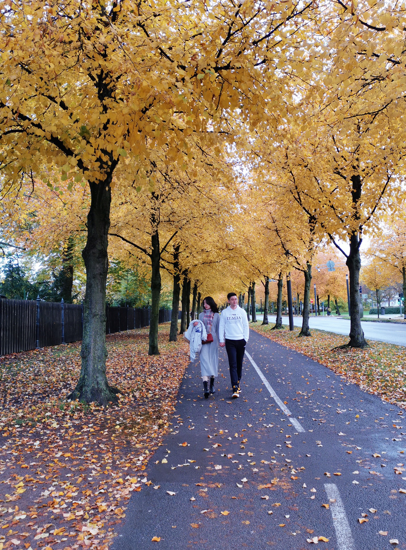 今天第一站是 瑞典 哥德堡 花园协会花园。据说里面种了上万种漂亮的玫瑰。入园发现玫瑰已经冬眠了,留下来一整条街金黄的银杏树和火红的枫叶。