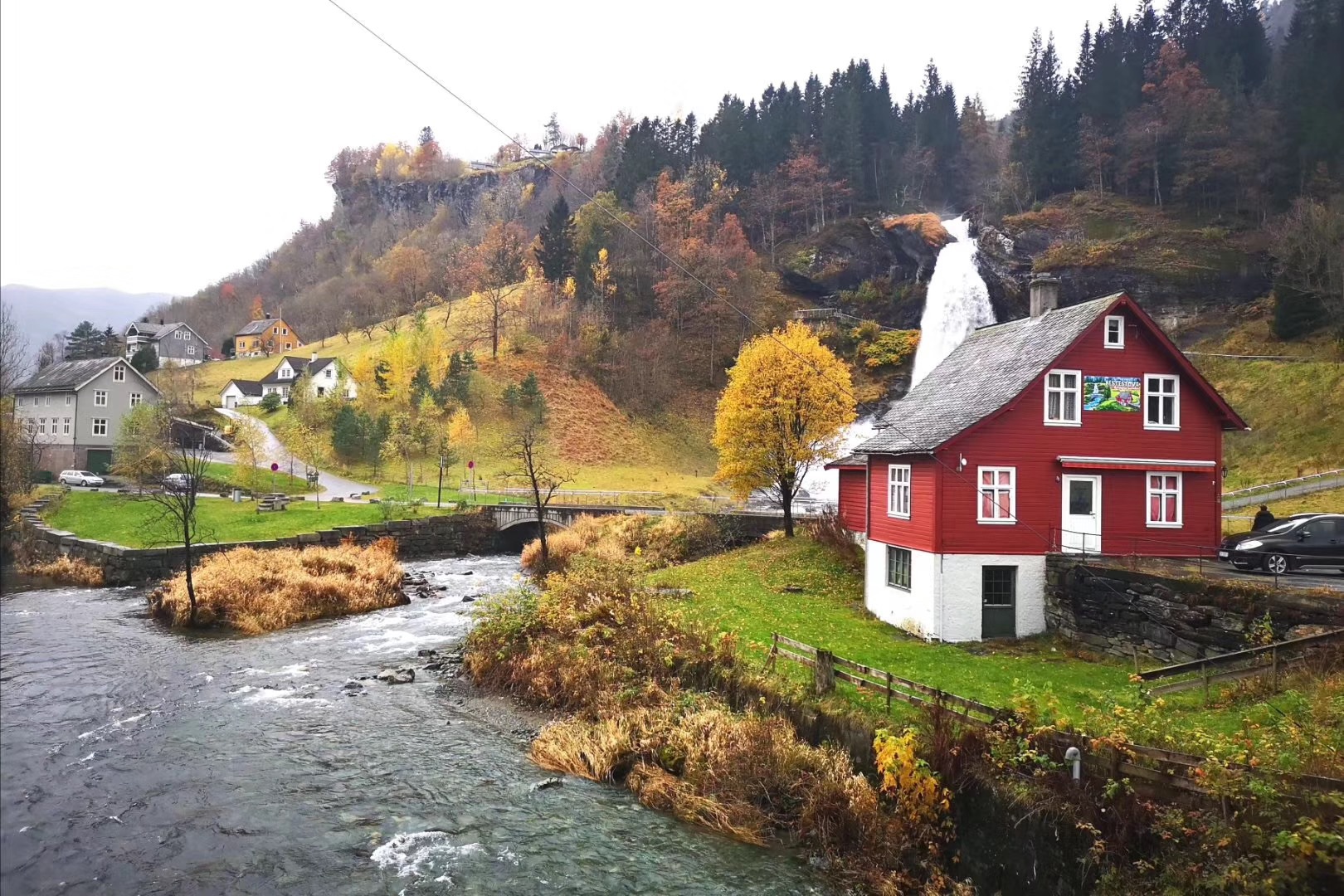 从 卑尔根 离开后,一路的风景也很怡人,走走停停看看,斯坦达尔瀑布是一处小景点,比较经典的是人可以穿越到瀑布里面去。