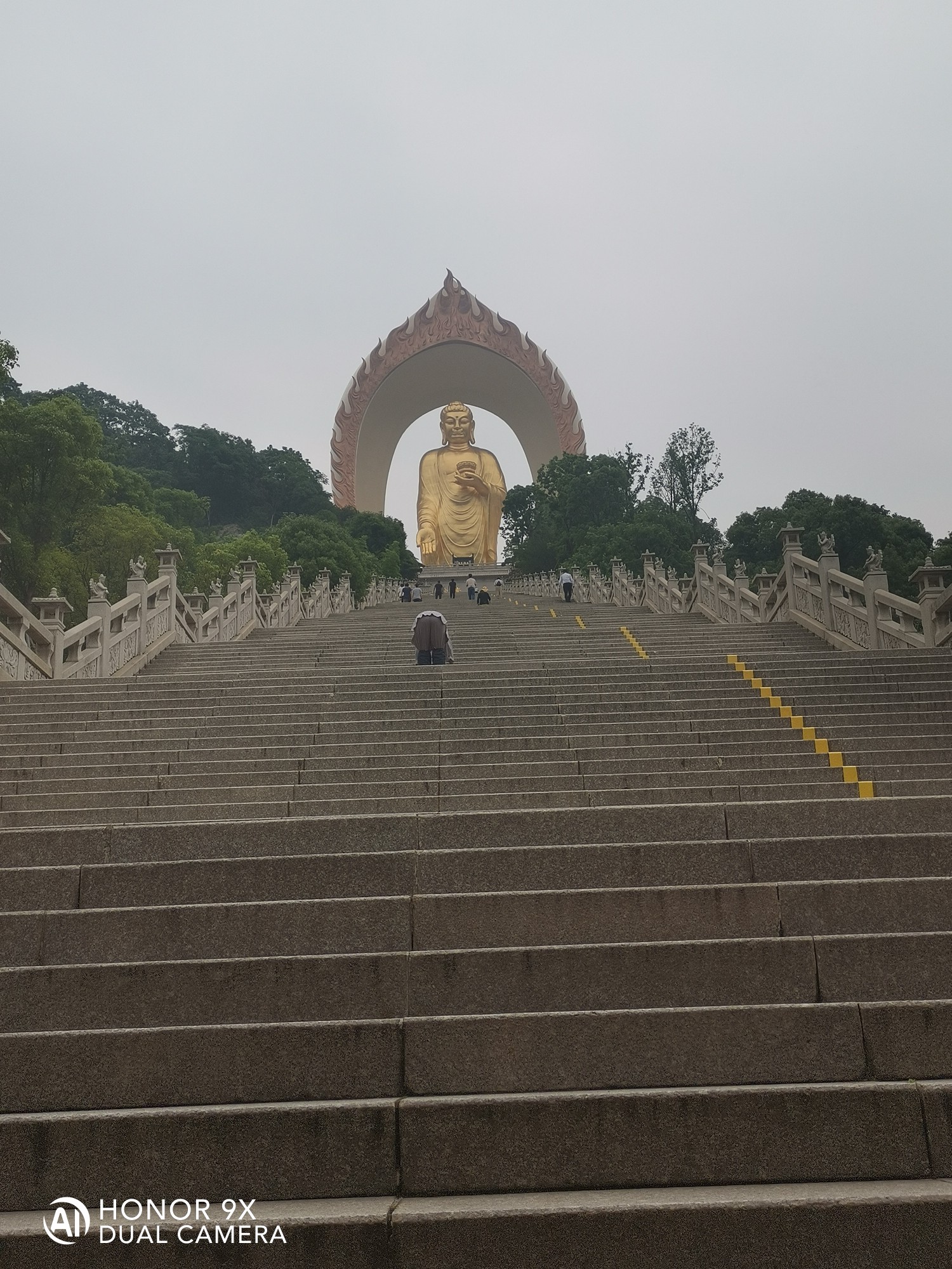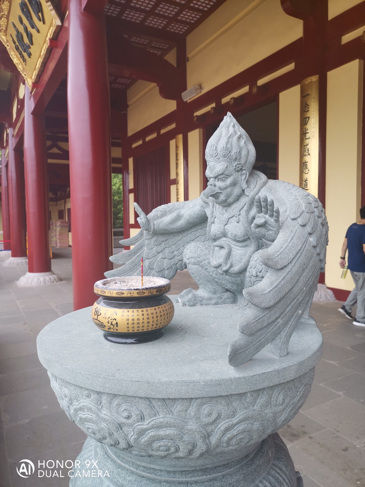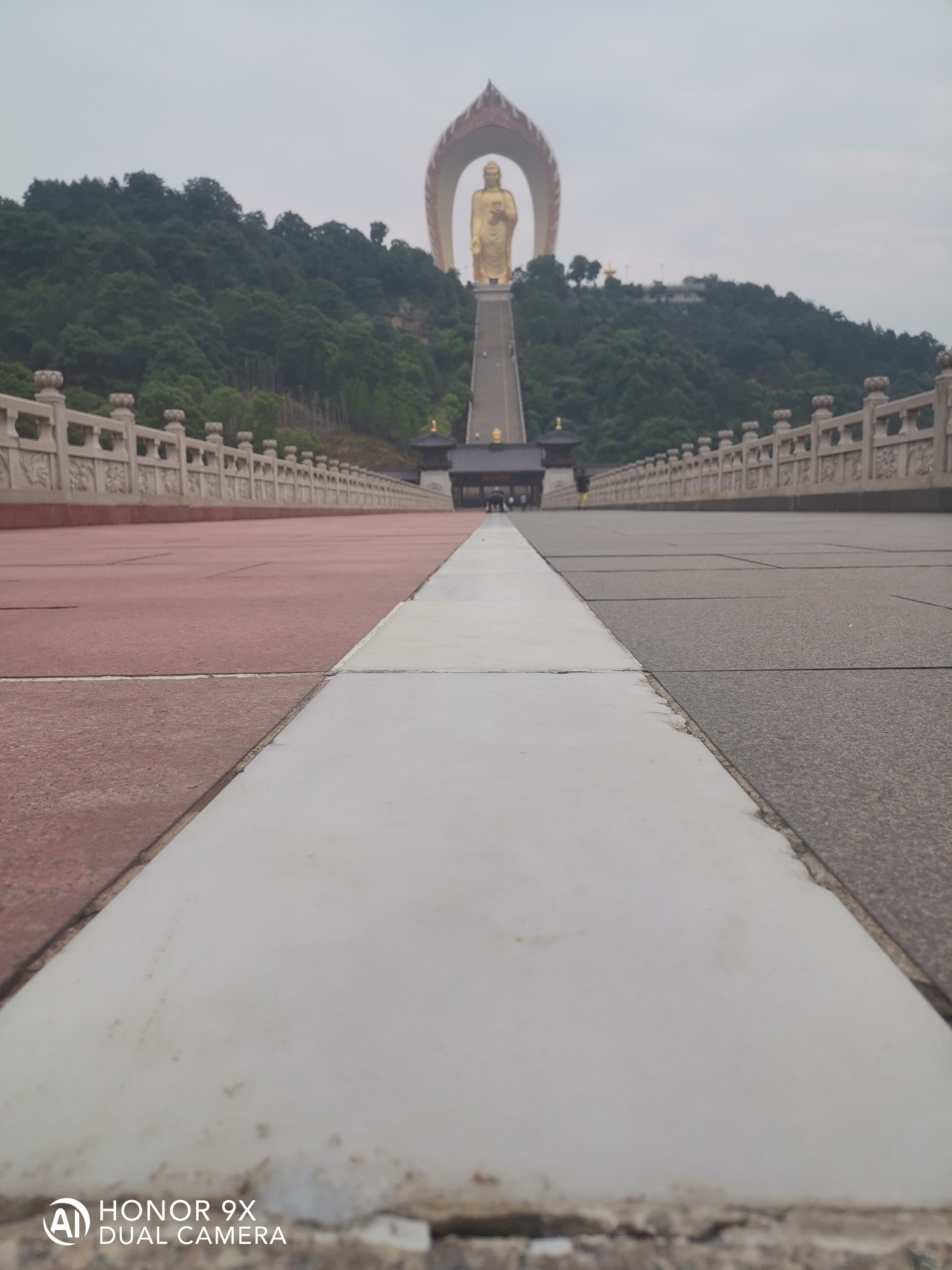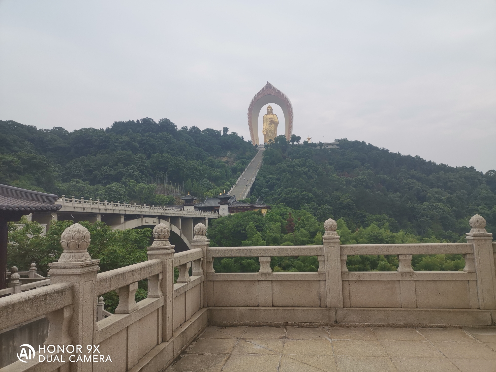 阿弥陀佛圣像,身高48米,宝盖81米,锡青铜铸造。莲花座6米,因铜里面融入了48公斤的黄金,又可称为合金铜铸造。大佛与莲台表面采用传统大漆工艺贴金,外表呈金色。佛身高48米表48大愿。