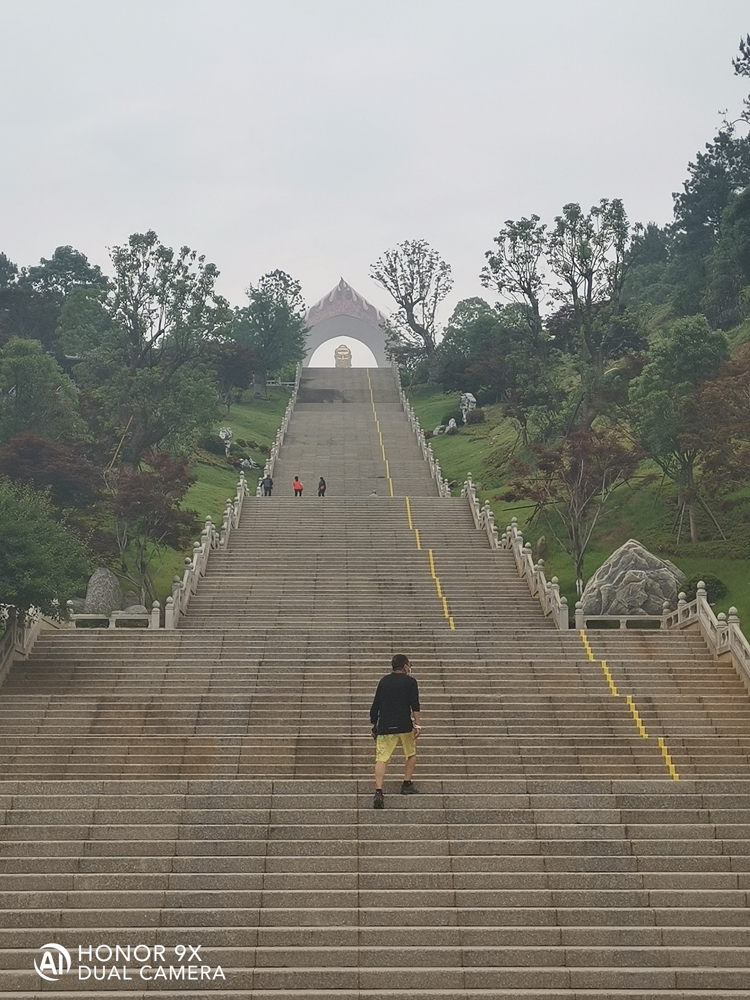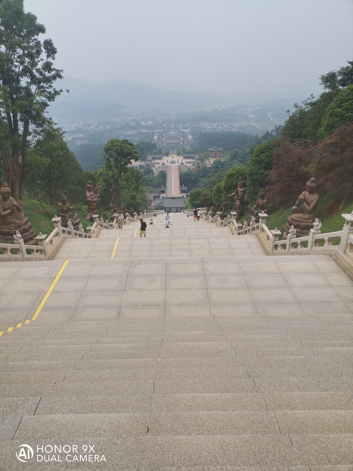 南毗大雄宝殿,北接金刚台,由三百九十一级花岗岩阶道组成,阶道两侧有花岗岩护栏,栏柱顶端镂着含苞待放的莲蕾。