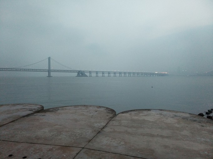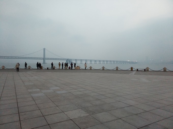 由于是过年,星海广场被装饰的灯火辉煌,人也特别多,由于有雾,远处的跨海大桥也朦朦胧胧的。冬天的海边,海风很大,也比较冷。可能我们当时去的时候天都快黑了,并没看到预想中的海鸥。