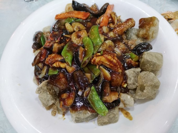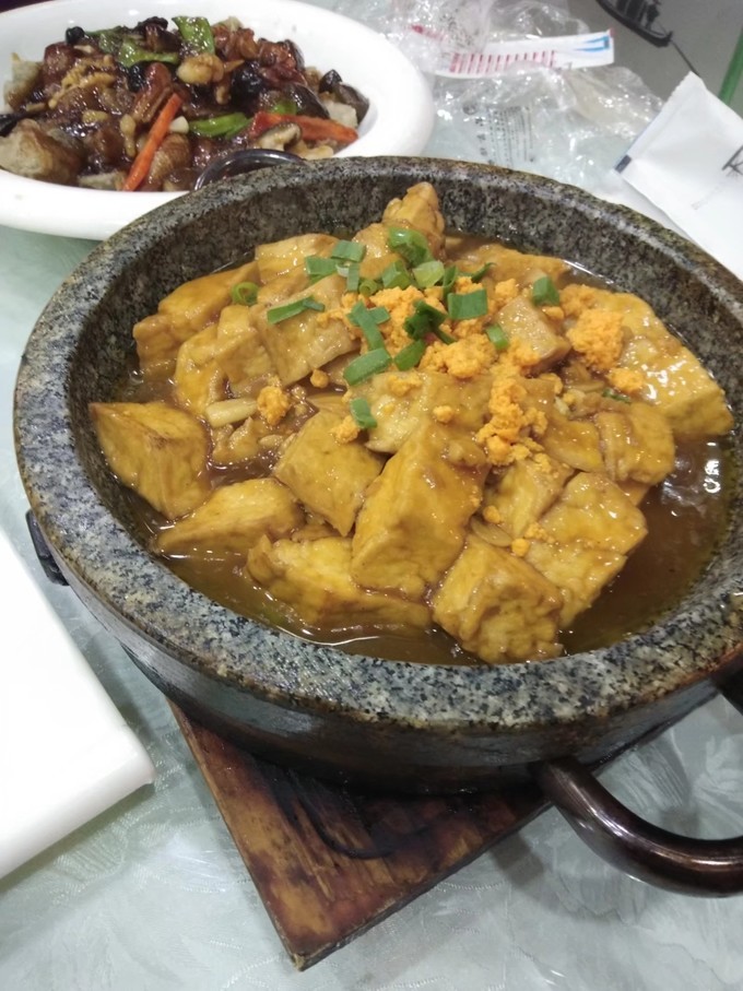 海胆蒸豆腐,味道一般,豆腐是典型的卤水豆腐,一股子卤水味儿。