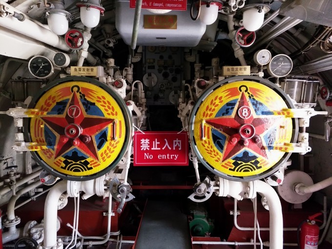 第一次真真切切下到潜水艇里,从外面看,潜水艇很大,但进到里面才发现,除去七七八八的仪表仪器,真正可使用的空间真的是小之又小。一搜潜艇可承载60-70官兵,而睡觉的地方又很有限,大家都是轮流休息或者躺在地上休息。看过这些,真的感叹:祖国之所以强大,真要感谢祖国的官兵,他们在如此恶劣的环境下,保家卫国,他们真的是我们最可爱的人!!!