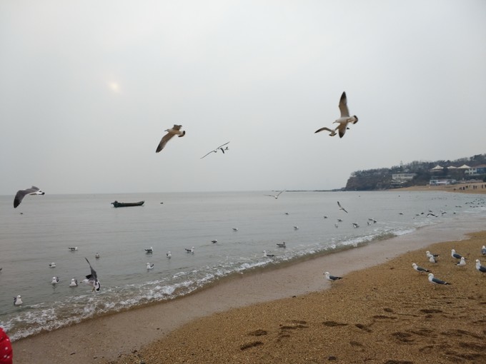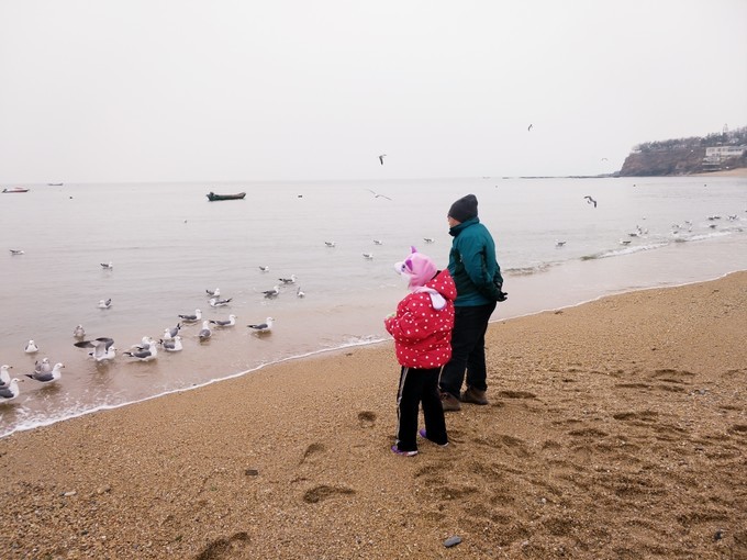 付家庄公园的沙不是很细,都是小石子,冬天的海边风很大,注意,是非常大,也比较冷,海边很多的海鸥,游客很少,有不少扛着专业相机来拍照的。