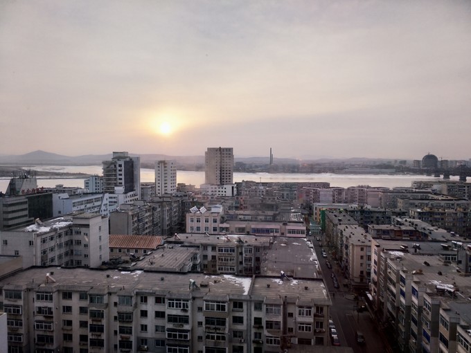 第二天 鸭绿江 边的日出。