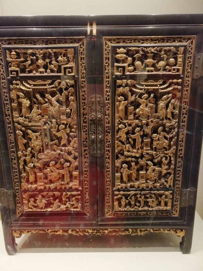 镂空的柜子,柜门上的人物,无论从表情还是从动作,都雕刻的惟妙惟肖