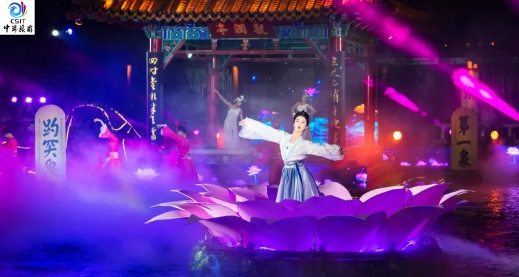 白天可以来孟家大院戏楼里听听曲儿,品传统文化的韵味;夜幕降临后,来到市楼旁,邂逅一场泉秀,随着阵阵泉水的喷涌,细细观赏李清照的一生,以及聂小倩与宁采臣爱恨情长的绝美演绎。