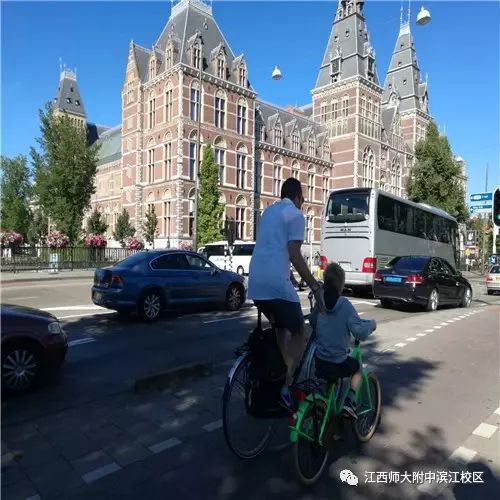 欧洲很多国家的街道并不宽阔,甚至可以说是狭窄,但是各种交通工具:轨道交通,汽车,自行车,行人都各行其道,极度遵守规矩,尤其是荷兰阿姆斯特丹的红色柏油自行车道,给人留下深刻的印象,因为行人在横过自行车道前,也是要看红绿灯的。行人要给自行车让道。自行车骑得飞快,导游提醒,不要闯红灯,要注意安全,因为如果被自行车撞到,他们是不会赔偿的,可能还要闯红灯的人自己要负责后果。