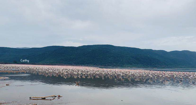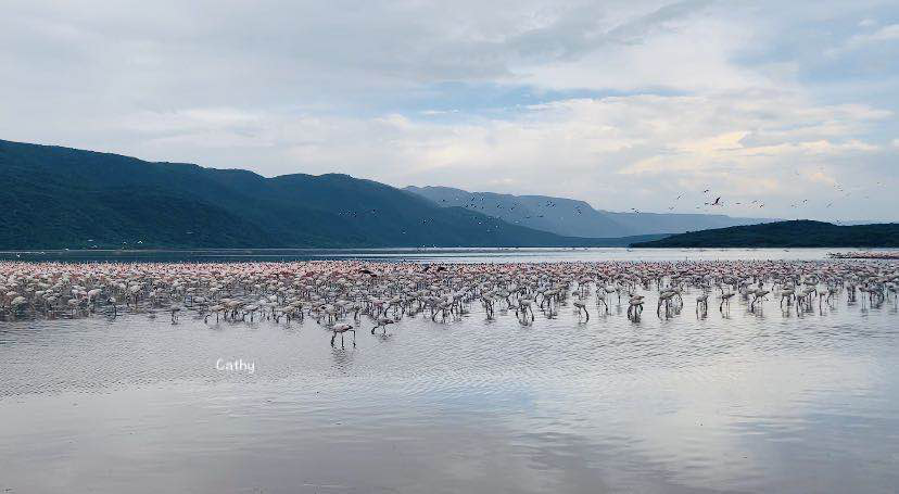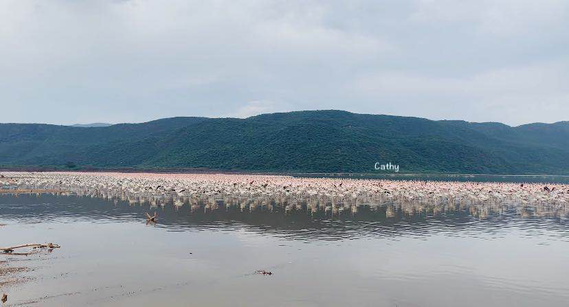 午餐后,我们休息到下午4:30分,才出发前往博格利亚湖。博格利亚湖是火烈鸟的天堂,在公园大门口我们都能看见大群的火烈鸟。博格利亚湖是个盐碱湖,湖内有许多适合火烈鸟吃的藻类,因此火烈鸟都聚集在此。