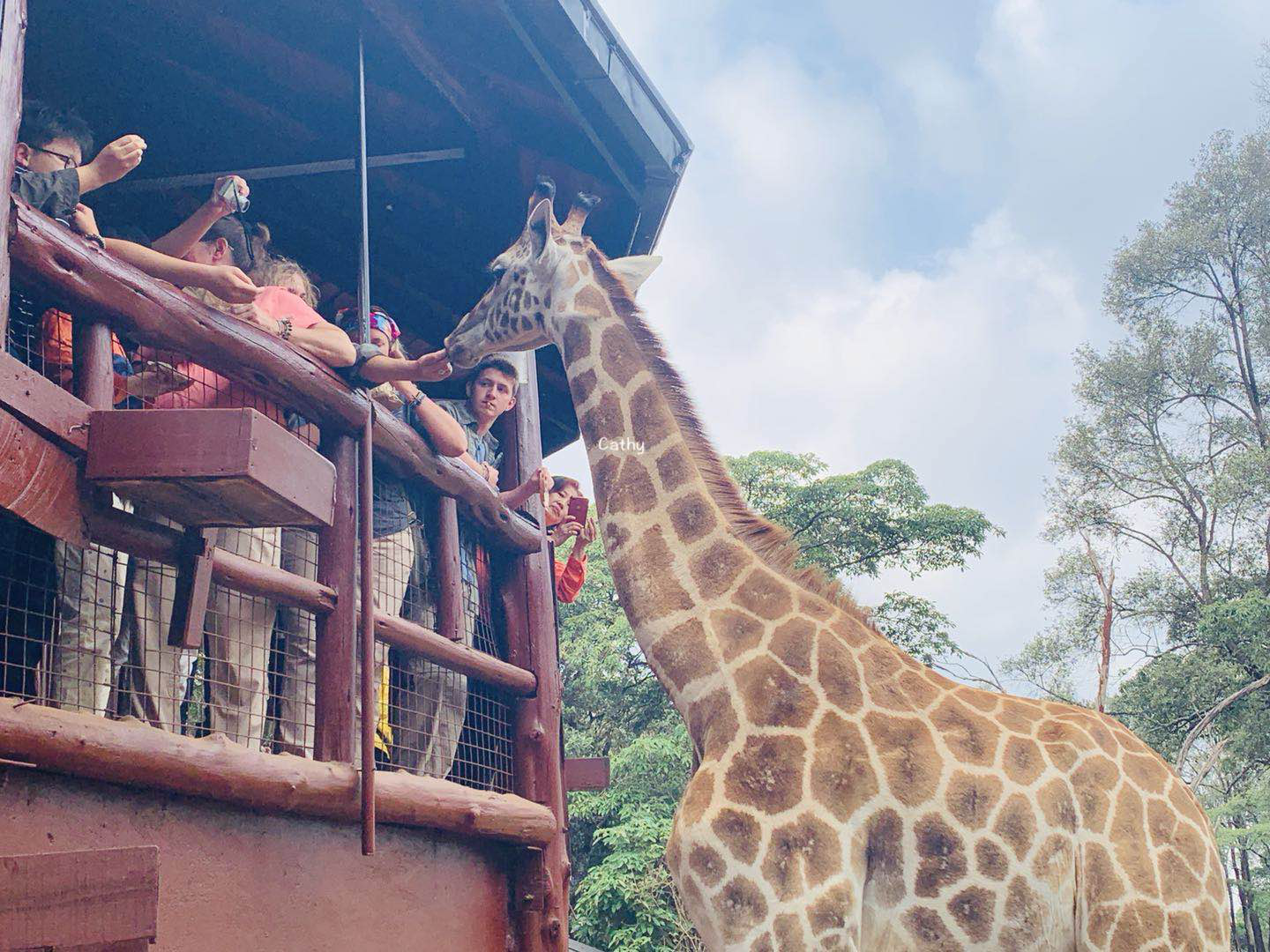 长颈鹿公园是我很久以来的一个梦想。与长颈鹿来个亲密Africa Kiss,才能表达我对它的爱。所以这Africa第一站,我就选择了来看长颈鹿。长颈鹿公园内是个二层楼的小阁楼,游客通常在二楼喂养长颈鹿,喂食的饲料由工作人员提供。