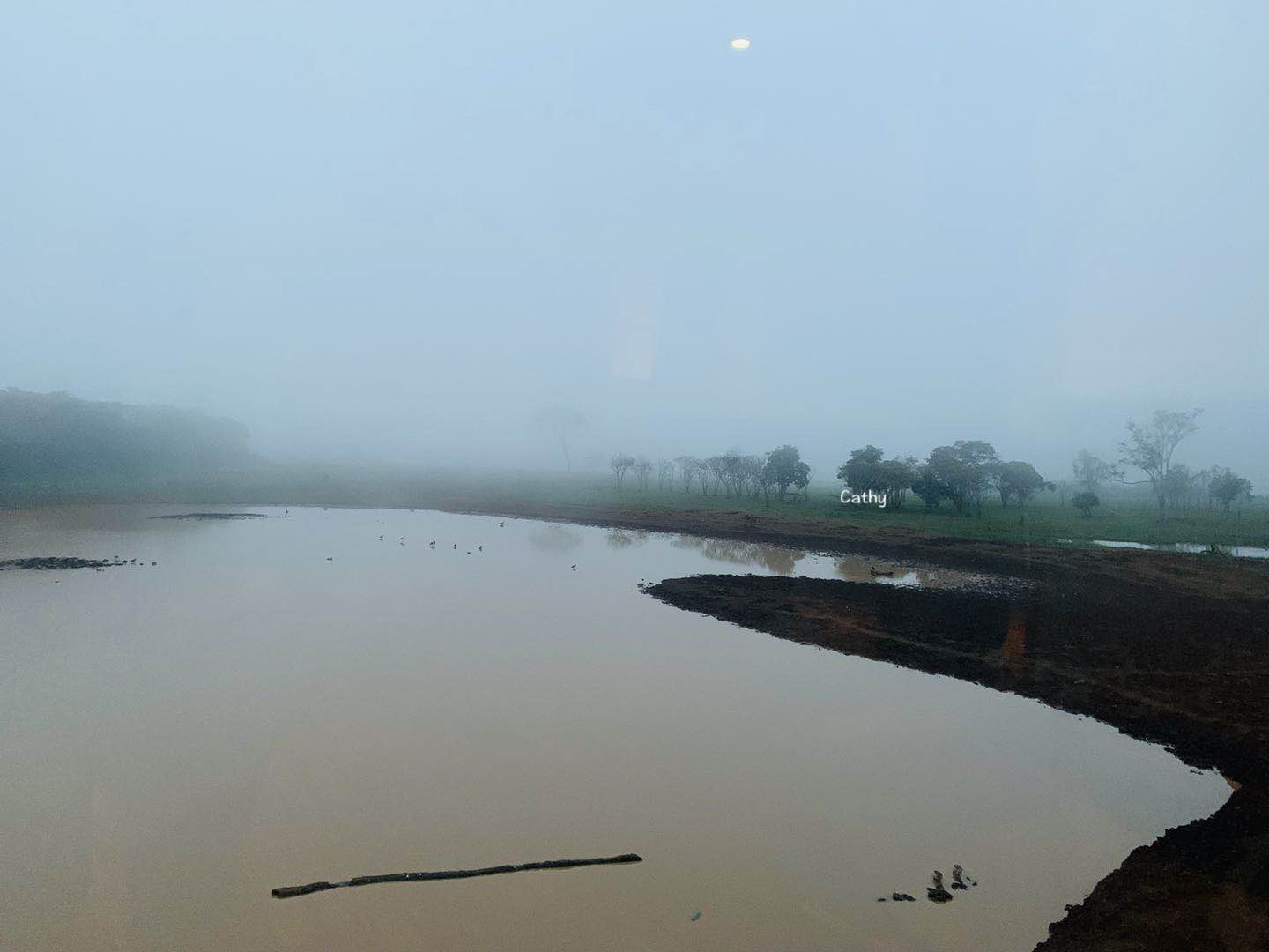 清晨早起,树顶大雾。
