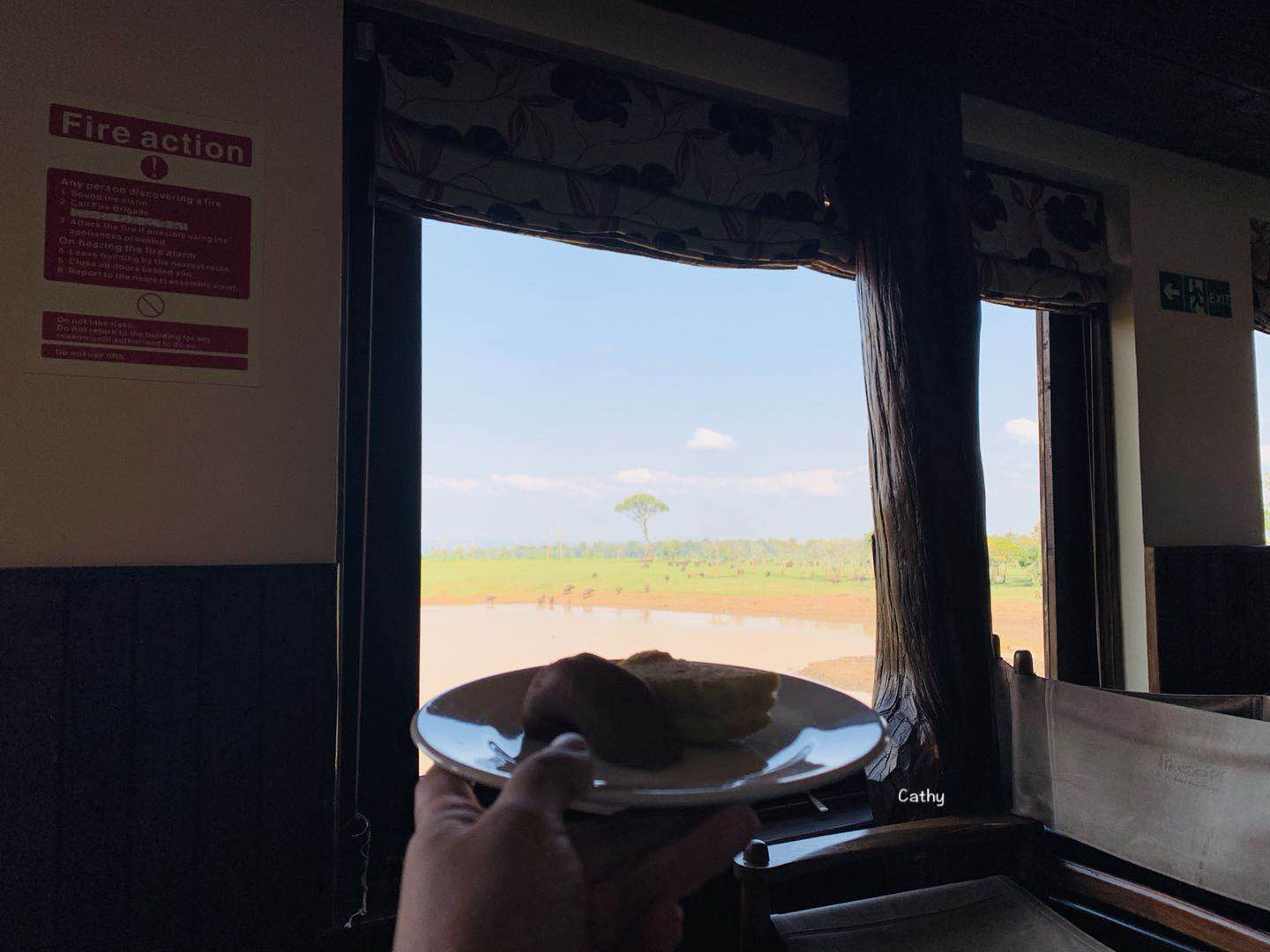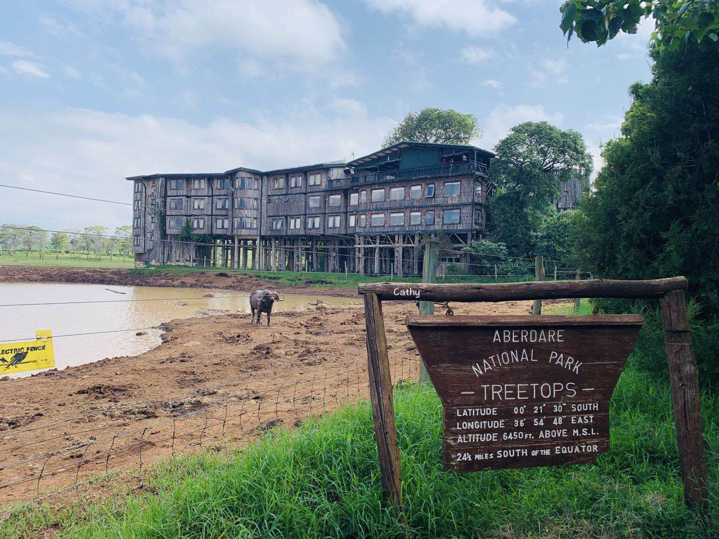 树顶酒店算是行程中我最喜欢的酒店。可能很多人会觉得这里无聊,不过我却很享受这份宁静。吃着下午茶点,静静的看着水牛等食草动物在水潭边嬉戏。顺带一提,树顶酒店的前面有一个大水潭,酒店工作人员会在水潭边洒盐,以吸引野生动物到水潭边添盐。盐也是野生动物日常不可缺的微量元素之一,所以它们总能被诱惑至水潭边。行程的最后一站,安静的享受这份美好也是很知足。