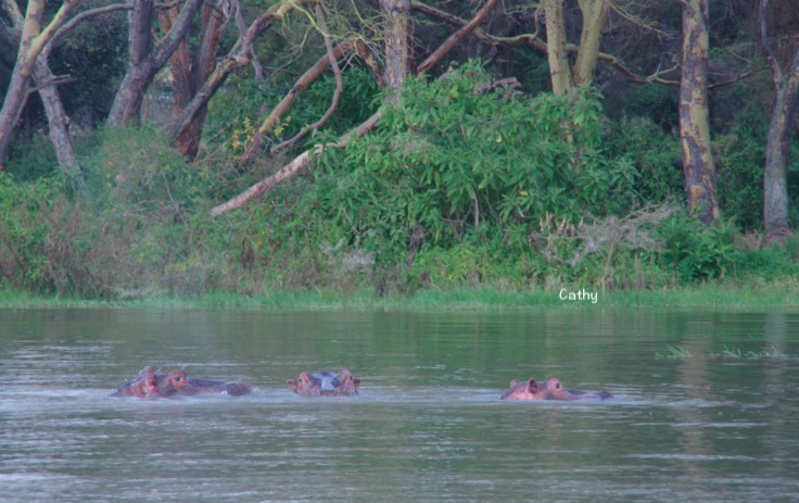 我们游船看到了许多许多成群的河马,河马是这片大陆最危险的动物。它们看着憨厚,实则脾气暴躁。去年有一个 台湾 游客遭到河马的攻击而死亡,且在纳瓦萨湖周边的渔民每年被河马攻击死亡的也是不计其数。所以千万不能被它们的外表所欺骗,不能靠近它们。因烈日当头,河马全部躲在水下乘着凉。当地人应该很熟悉它们的位置,不会去靠近它们。河马是食草动物,天黑以后就会陆续上岸吃草。