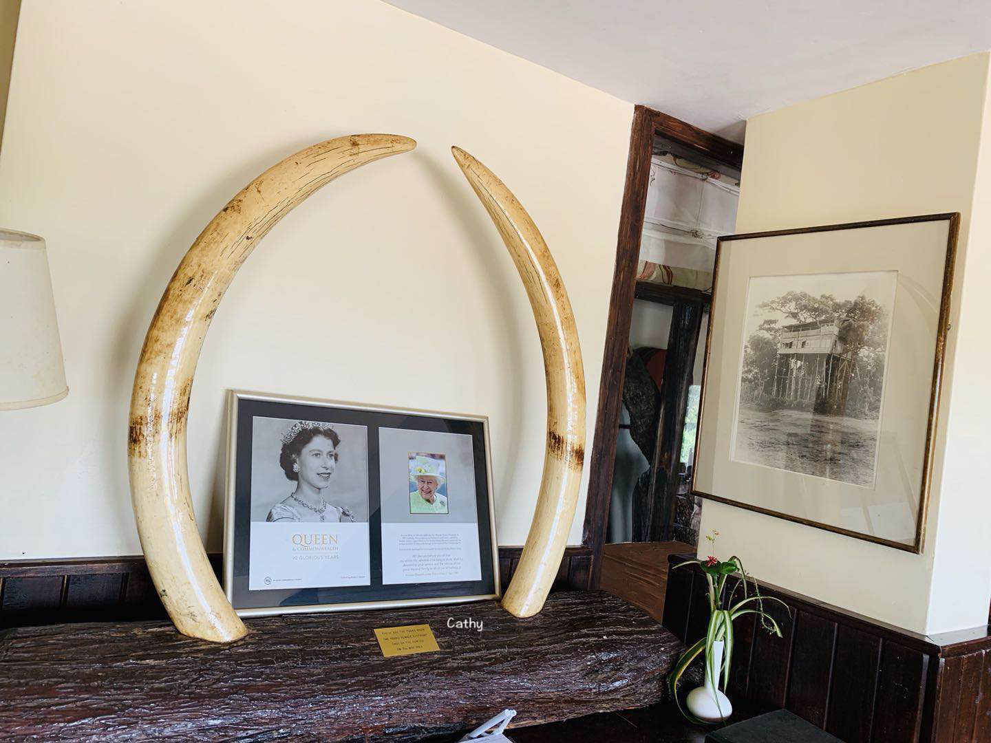 1952年2月5日, 英国 国王 乔治 六世的长女伊丽莎白公主和她的丈夫 爱丁堡 公爵,在这简陋却原始的小屋顶惬意的听着鸟鸣,看着远处迷雾笼罩的 非洲 第二高峰--- 肯尼亚 山,尽情享受着浪漫时光。鸳鸯蝴蝶梦正浓时,遥远的雾都 伦敦 ,伊丽莎白公主的父亲 乔治 六世因患肺癌不治身亡,伊丽莎白公主的命运随之在与野兽 和美 酒同眠时悄然改变。梦醒时分,她就成了 大英 帝国的女王,成了 英国 和英联邦15个成员国的国家元首。“树上公主,树下女王”的传奇故事就此诞生。
