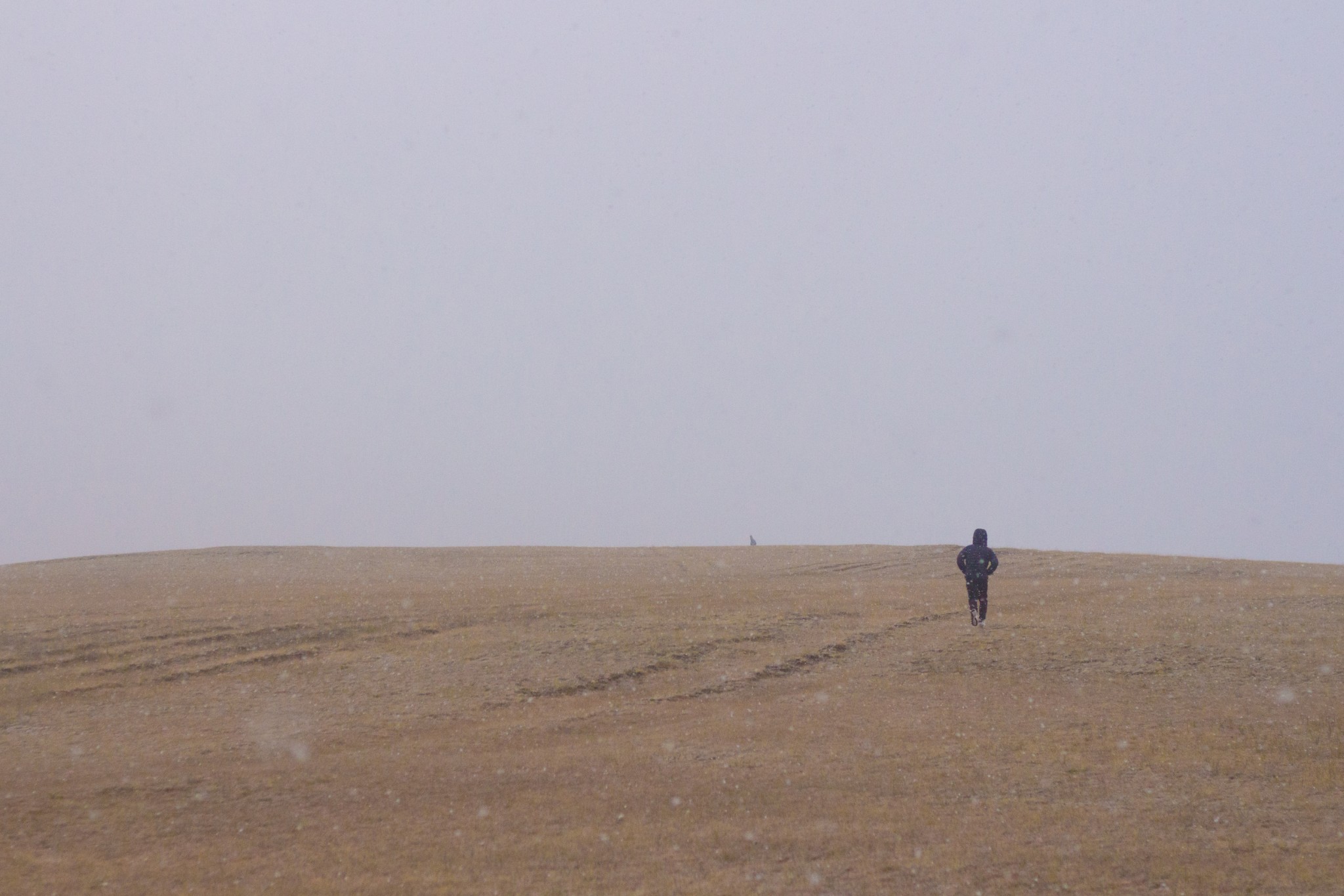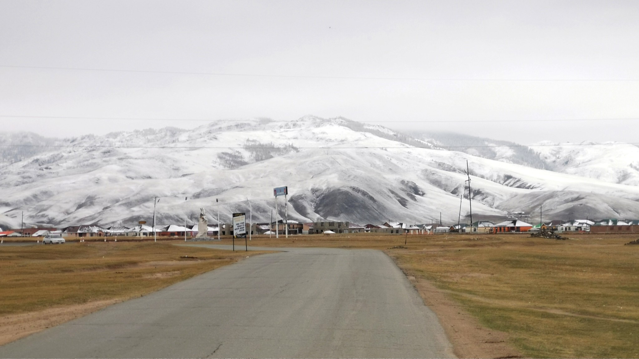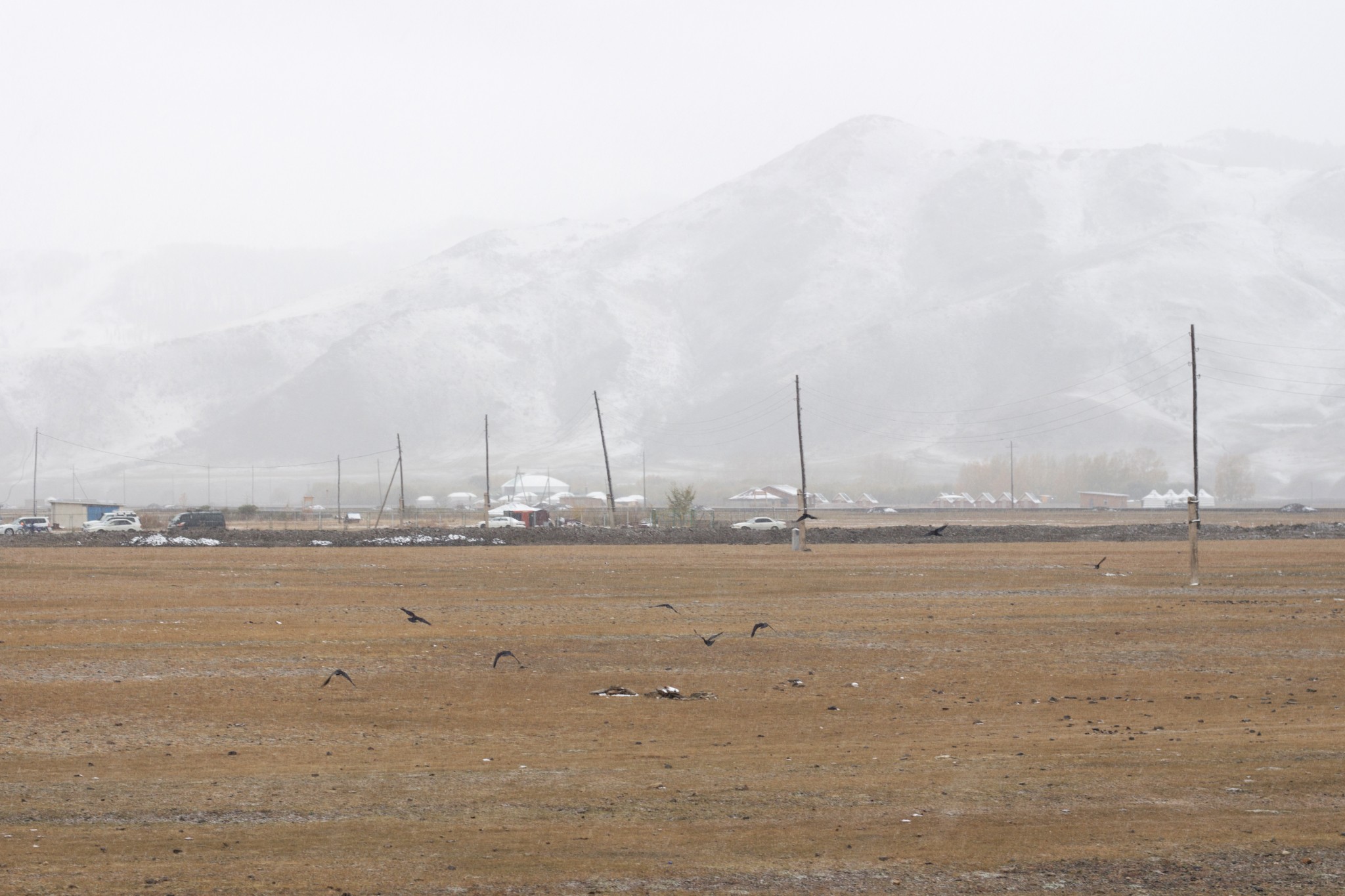 饭后我们继续奔鄂尔浑河方向行进,走着走着,天色暗了下来,路上行驶的小车开着示廓灯,远处的山峰变得模糊,天空又飘起了雪花。