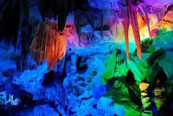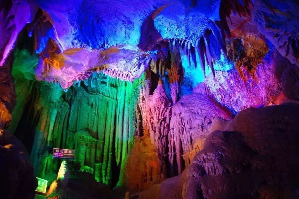 洞内崖壁深幽,景观密集,石笋、钟乳石千姿百态,加之光灯的照射,色彩绚丽,如处龙宫。