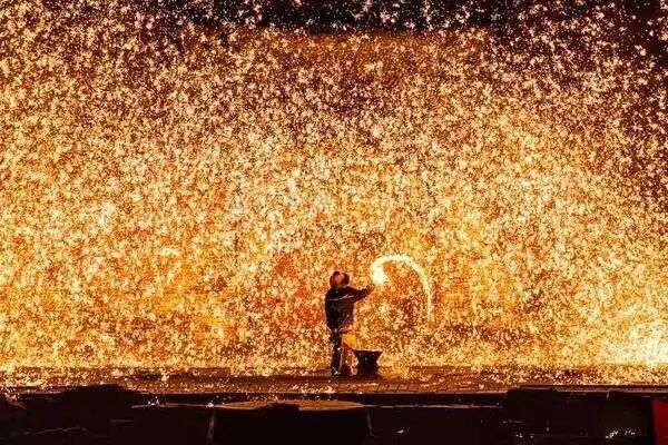 到了暖泉古镇,一定不能错过的还有当地有着500多年历史的古老节日社火——打树花。熔化成1600度的高温铁水,泼向古堡城墙,千万朵金花瞬间绽放!
