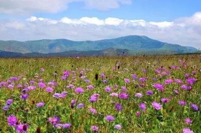 空中草原夏季气候温凉,花草茂盛,各色野花次第开放;云雾时常从山下升腾上来,抚地游走,人可“手摸白云天,脚踏花草地”。